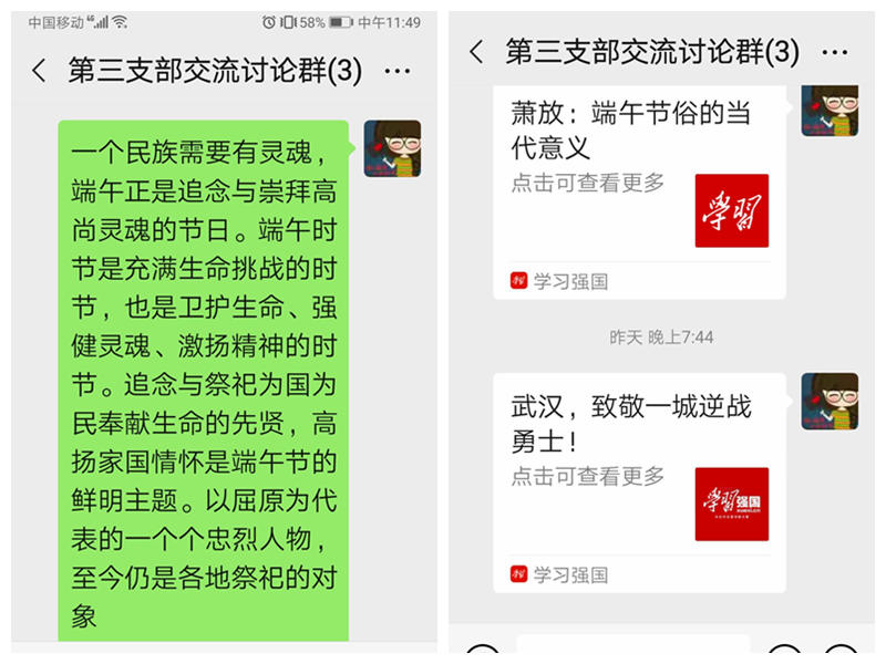 6月20日,综合工作党支部举办“听端午节故事,学习传统端午民俗”活动。党员们观看端午节相关故事视频,了解端午节的起源和传统习俗,深刻领悟了传统文化内涵和精髓。