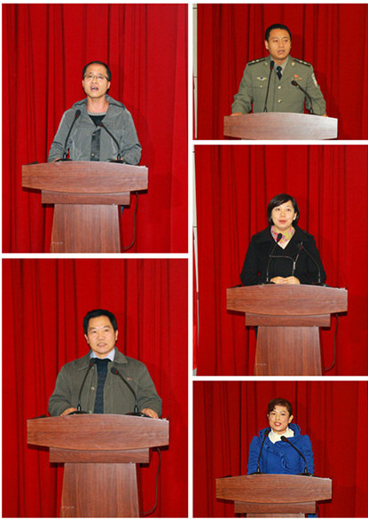 报告会由宣讲团的五位成员分别讲述了二炮军官沈星的英勇壮举、白鹿原上带领群众实现致富梦的“樱桃王”张崇民的艰苦创业之路、长安区东大村的刘安民30多年里用真情善心孝敬老人、被群众称为“城管好人”的未央区城管执法局的赵炳智、用爱筑圆教育梦的临潼区优秀教师王亚绒的感人事迹。他们用真挚的语言再现了我们身边的榜样人物,鲜活的先进事迹感动了在座的每位师生,全场掌声经久不息。