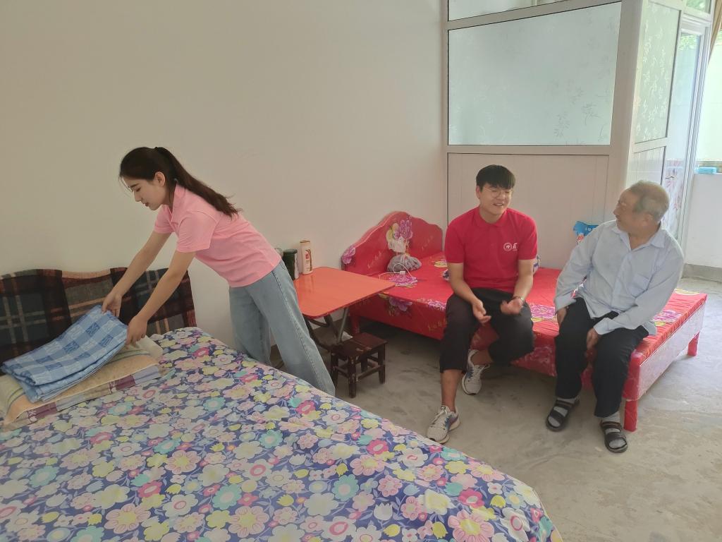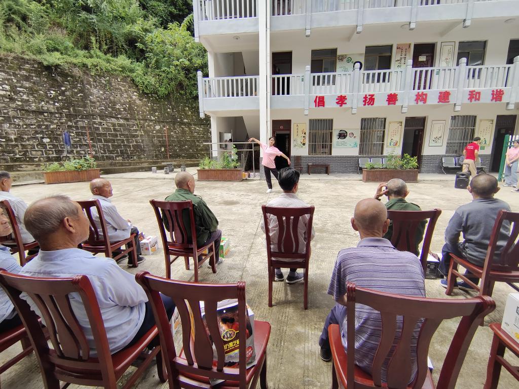8月13日下午,必赢官网大学生爱心团队在佛坪县团委副书记张磊的带领下来到佛坪县大河坝镇谭家河村敬老服务站,对15名五保老人进行敬老助老关爱老人活动,并开展慰问演出活动。