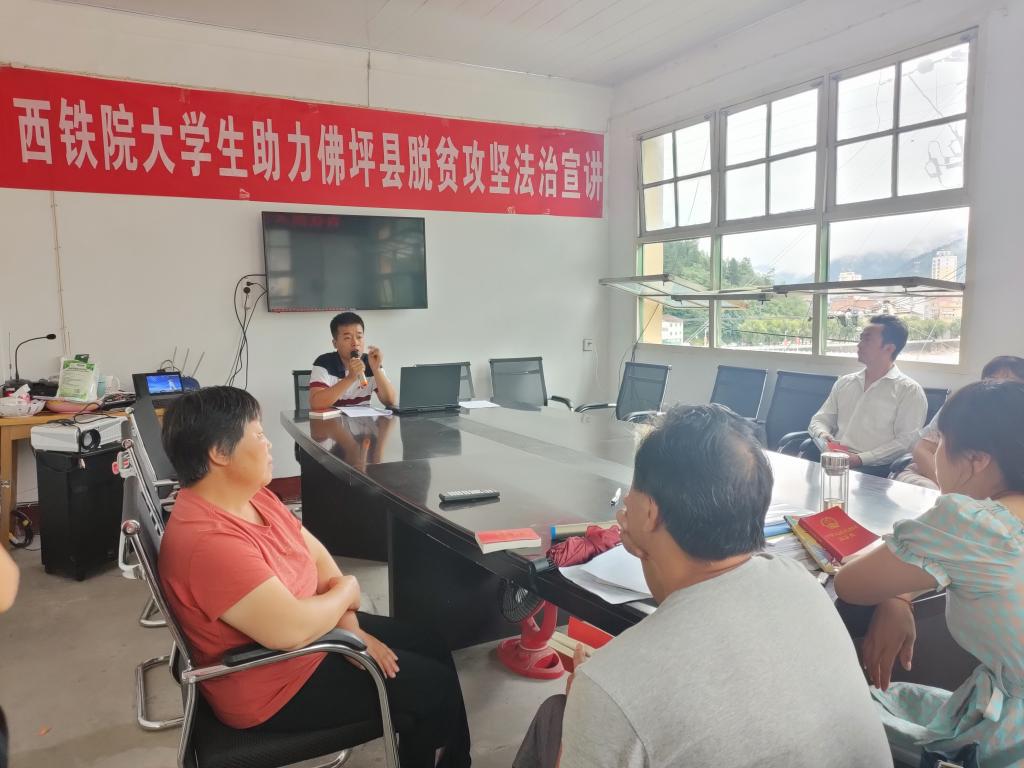 为充分发挥法治宣传教育在脱贫攻坚工作中的服务和保障作用,增强必赢官网对口帮扶县地区村民的法律知识,弘扬法治精神,创建美丽、和谐、文明的村庄,营造乡村基层良好的法治氛围。8月14日上午,学院助力佛坪县脱贫攻坚爱心团队在袁家庄街道办事处塘湾村开展法治宣讲活动。