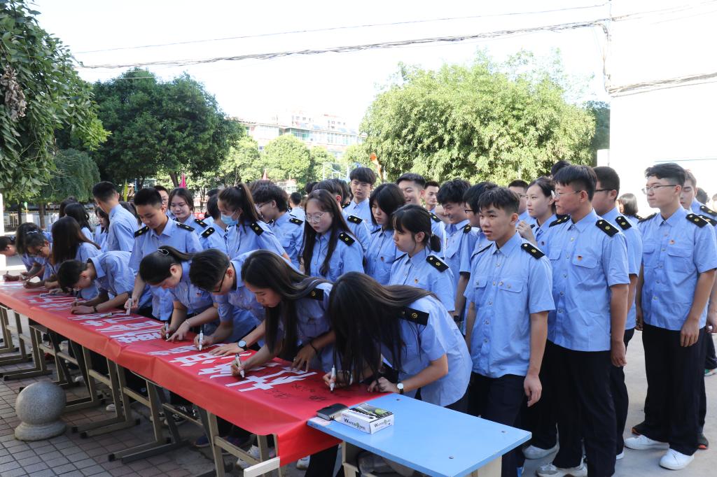 活动现场,40多名学生代表通过宣读倡议书、集体宣誓、在“杜绝浪费,勤俭节约,光盘行动,从我做起”红色条幅上签字等形式,表达了响应国家号召,从自身做起,厉行节约、杜绝浪费的决心。承诺在日常生活中自觉培养节约习惯,弘扬真善美,传递青春正能量,以实际行动,引领“浪费为耻,节约为荣”良好风尚。