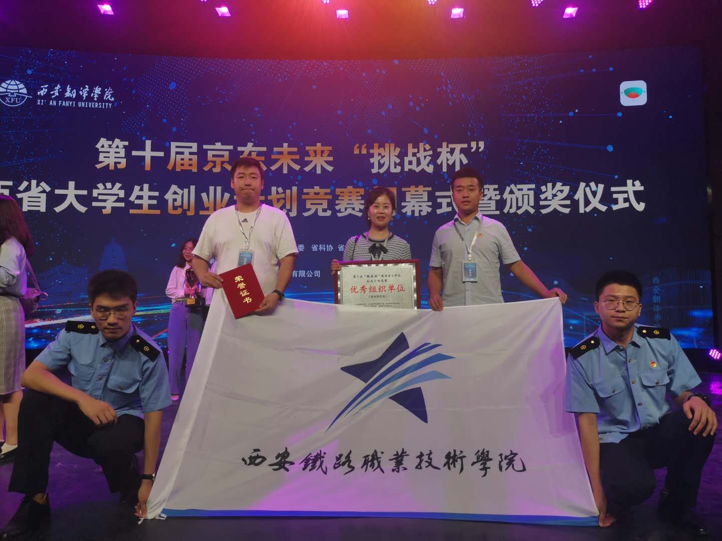 9月11日,由共青团陕西省委、陕西省委教育工委、陕西省科协、陕西省社科院、陕西省学联等共同主办的第十届“挑战杯”陕西省大学生创业计划竞赛闭幕式暨颁奖仪式在西安翻译学院举行。学院团委副书记李妮、项目指导老师及获奖学生代表参加仪式。必赢官网在本次大赛中获得一项金奖,两项银奖,两项铜奖的优异成绩,同时学院荣获“优秀组织奖”,成绩在全省高职院校中名列前茅。