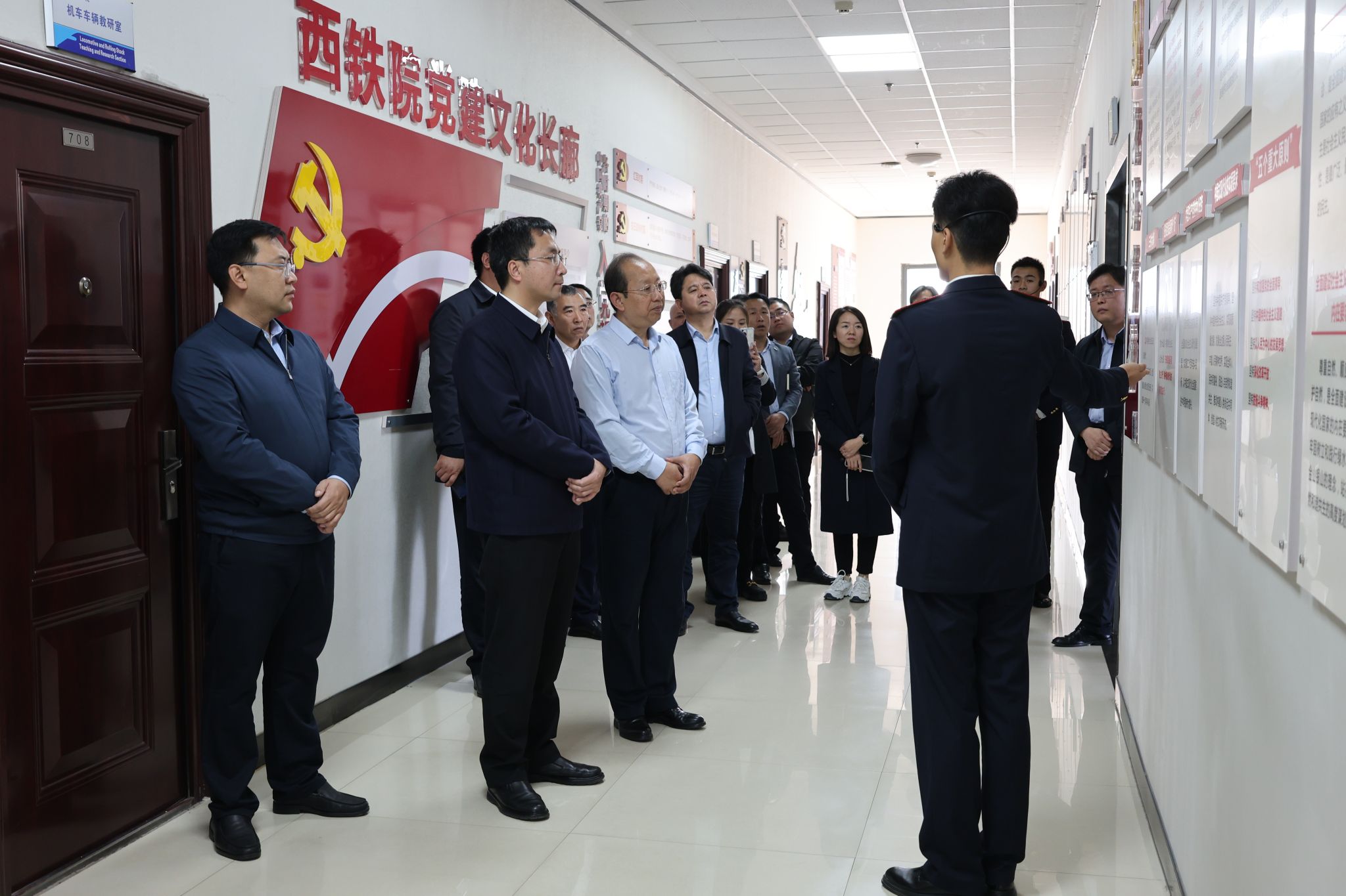 学校党政办公室、党委宣传部、发展规划处、党委学生工作部、安全保卫处、后勤基建处、牵引动力学院、机电工程学院等院部相关同志陪同调研。