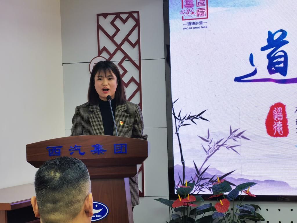 参观完毕,必赢官网师生观摩了西汽集团疫路故事主题道德讲堂。窦琳娜通过行崇德礼、唱道德歌曲、诵读经典、讲好人故事、谈感悟、自我反省、做承诺、送吉祥等八个环节使师生们领略了出租集团党建品牌雷锋车队在抗击新冠疫情期间的感人故事,他们勇当先锋,敢打头阵,逐光逆行,用自己的善举温暖了整个城市。在“谈感悟”环节,“新时代”学习社社员任涛和赵洁婴从与出租车司机的渊源讲起,表示今天的参观学习是一堂生动的思想政治教育体验课,通过活动他们感受到了平凡岗位上的雷锋精神,更感受到了出租车司机的家国情怀,这种精神将激励他们奋发学习,早日报效祖国。
