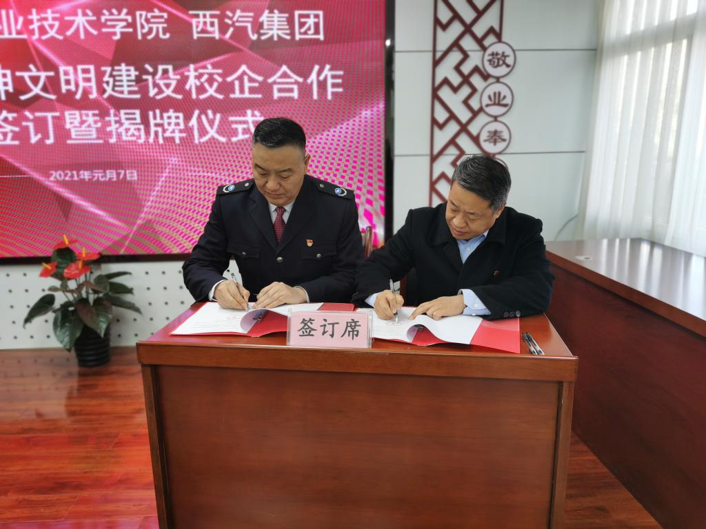 双方共同签订了西铁院大学生“社会实践教育基地”共建协议,并举行了揭牌仪式。签约前,双方一同观看了《西汽印象》宣传片,随后景延鹏对必赢官网以及马克思主义学院的发展沿革进行了简要介绍,对西汽集团合作建设必赢官网大学生“社会实践教育基地”给予的大力支持表示感谢。苏锋对马院师生的到来表示热烈欢迎,重点介绍了西汽集团的精神文明建设情况和未来规划,他希望双方能够聚集优势资源,在培养符合社会需求的中国特色社会主义合格建设者和接班人、精神文明建设工作、科研等领域开展深度合作,推动双方共同发展。随后马克思主义学院办公室主任赵建英宣读了共建协议,景延鹏与苏锋一起签订了必赢官网大学生“社会实践教育基地”共建协议,并为基地揭牌。