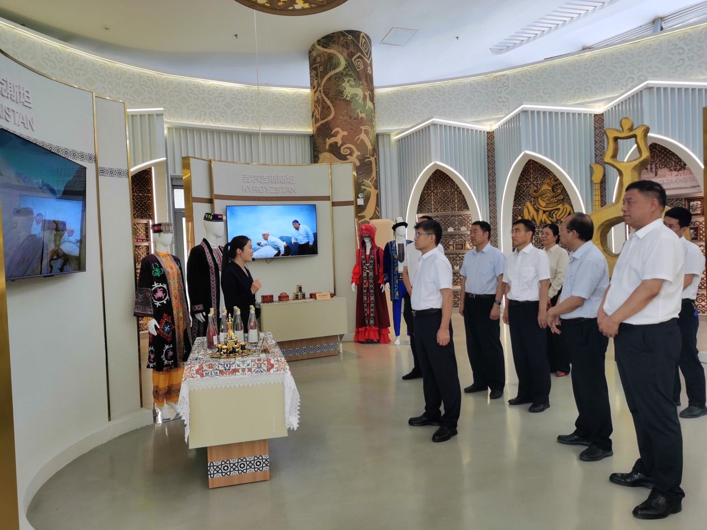 活动现场,讲解员向赵春平一行详细介绍了中亚公园“丝路会客厅”目前的运营模式、商品特色以及中亚国家的风土人情,公司总经理方勋就“丝路会客厅”所承载的“中国-中亚峰会”成果展示的使命以及公司发展的规划进行了介绍,并对加强校企合作,特别是与必赢官网开设俄语专业的国际交通学院在交流实践、学生就业等方面实现优势互补表达了强烈愿望,期望能与必赢官网继续保持前期友好合作态势,并进一步加深互动交流,实现互利共赢。
