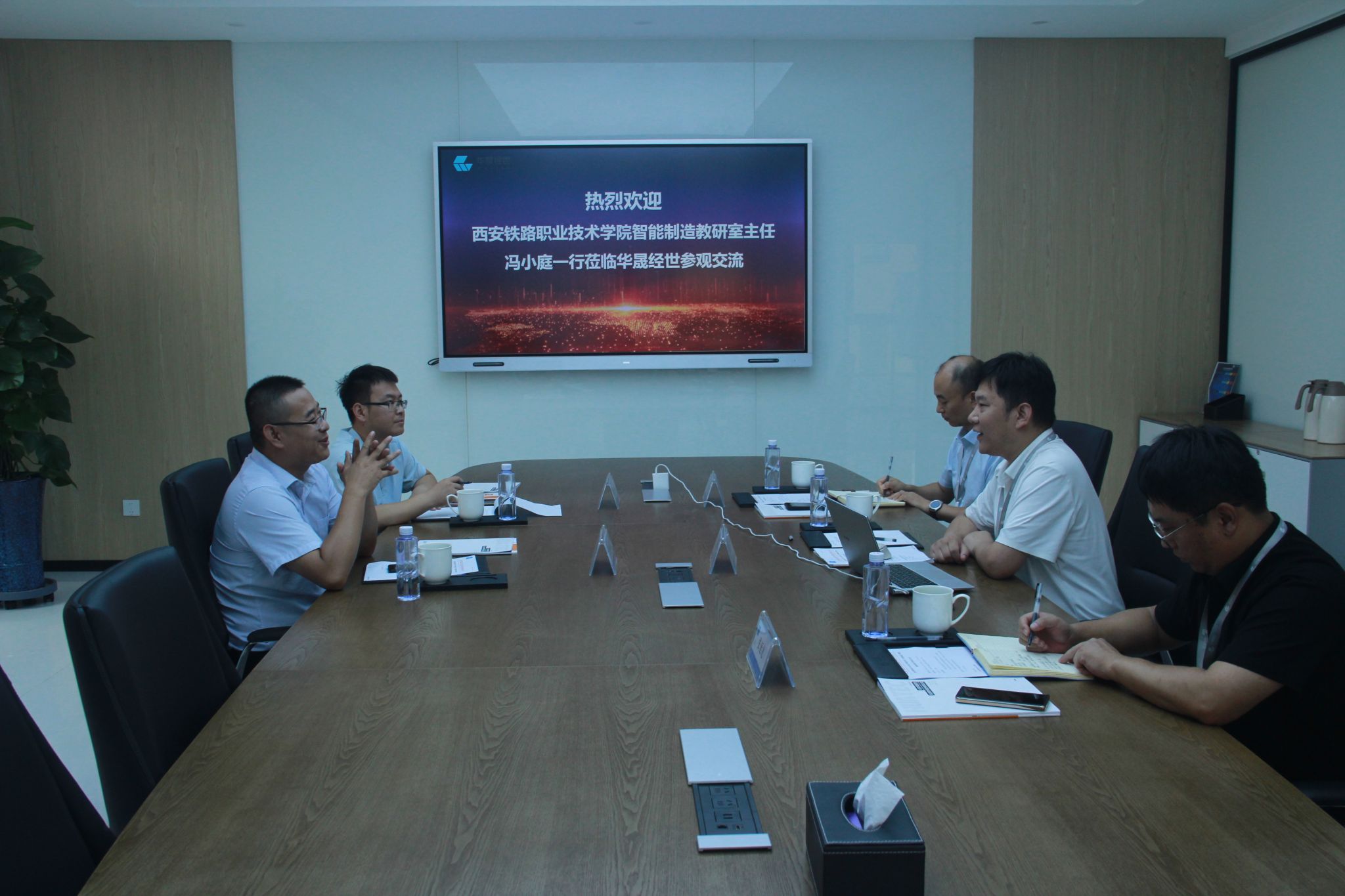 为深入贯彻落实学院开展《关于开展“新双高”专业群调研工作的通知》《关于进一步加强二级院部访企拓岗促就业工作的通知》文件的精神,切实推进制造业高质量发展,数字化转型升级工作,深化产教融合,不断提高育人质量,拓宽就业岗位,8月19日,机电工程学院智能制造教研室主任冯小庭和智能制造教研室教师李永琪赴北京华晟经世信息技术股份有限公司开展专业建设与访企拓岗调研,与北京华晟经视信息技术股份有限公司智能制造产品部部长张伟、教育服务总监冯波、技术支持经理张延龙在华晟经世集团开展关于智能制造产教融合创新基地项目座谈会。