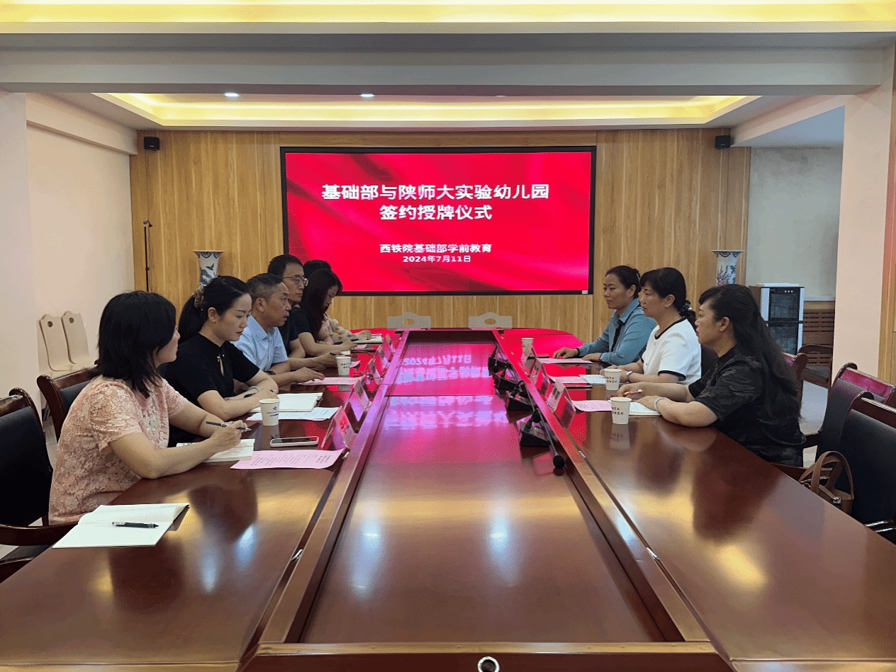 为促进学前教育人才培养、专业建设与实习实践,7月11日,学院基础部与陕西师范大学实验幼儿园在龙首校区就双方“实习+就业”签约授牌举行了会谈。陕西师范大学实验幼儿园园长李敏、副园长贾莉,基础部主任孙明魁、副主任张博雅等参与活动。