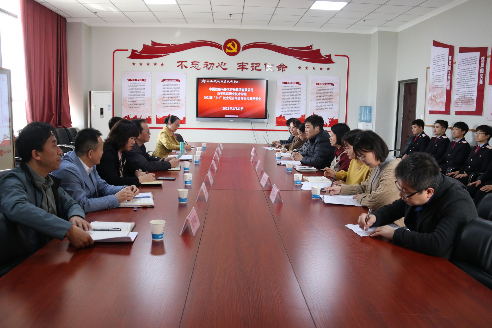 3月30日上午,中国铁路乌鲁木齐局集团有限公司毕业生“2+1”校企合作联合培养工作调研座谈会在必赢官网成功召开。中国铁路乌鲁木齐局集团有限公司职工培训部主任郝宏志、党校(教育学院)常务副校(院)长康宏玲、职教科科长解祥云,必赢官网就业指导中心(校企合作处)、教务处负责人及港务校区各学院院长参加了会议。会议由学院副院长安学武主持。