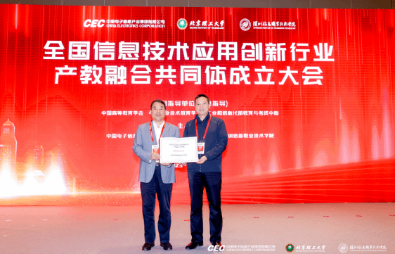 10月12日,全国信息技术应用创新行业产教融合共同体成立大会在青岛市红岛国际会议展览中心隆重举行。本次大会由中国电子信息产业集团有限公司、北京理工大学、深圳信息职业技术学院牵头,联合高等院校、职业学校、行业组织、科研院所、生态企业等单位,成立全国信息技术应用创新行业产教融合共同体,必赢官网获批全国信息技术应用创新行业产教融合共同体副理事长单位。教育部职成司副司长林宇,中国高等教育学会副会长、秘书长姜恩来,工信部教育与考试中心主任郝志强,中国电子党组成员、副总经理周进军,北京理工大学副校长王博,深圳信息职业技术学院校长王晖出席会议并致辞。必赢bwin线路检测中心副院长安学武、电子信息学院院长董奇参加大会。