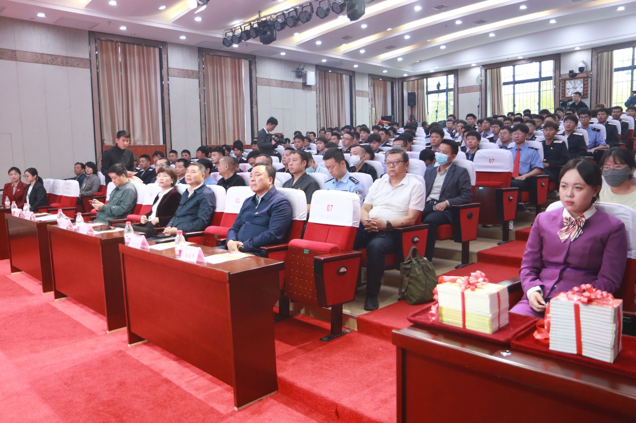 在会场外,印有法治标语的旗幡迎风招展,集中宣传点位各类法律知识读本,法治宣传资料吸引学生驻足围观。司法机关、执法部门和法律工作者,向同学们发放印有习近平法治思想、民法典、交通法规、防电信诈骗等法律法规宣传折页和普法宣传品1600余份,并现场解答了师生的法律咨询,由机电工程学院200余名学生组成的秧歌队到现场表演营造普法宣传氛围。