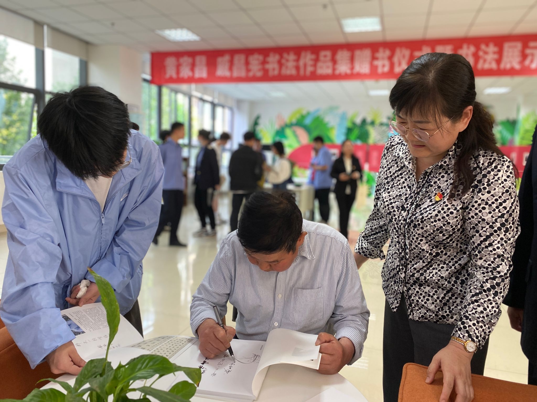 两位书法家将其书法作品集捐赠图书馆,希望广大师生在学习生活中多学书法、多用书法。黄家昌谈到,书法是中华民族的国粹,是传统文化的基石,希望广大师生积极学习书法、热爱书法,继承和弘扬中华优秀传统文化,希望以后多开展内容丰富的书法活动,充分让书法艺术更好发挥以书弘‘文’、以书载‘道’、以书育‘人’、以书润‘德’的积极作用。戚昌宪回顾了在学院几十年的工作经历,感谢学校的培养,并希望师生在生活中学书法、用书法,提高感受美、表现美、鉴赏美、创造美的能力。