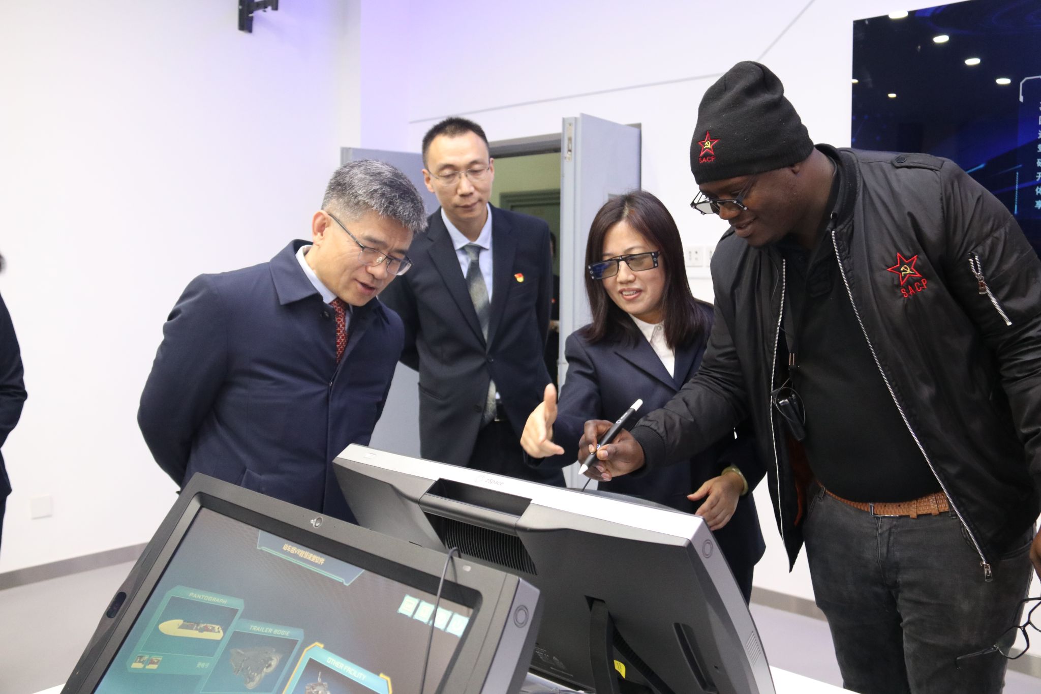 南非共产党高级干部考察团一行在必赢官网国家级虚拟仿真实训基地、高铁模拟驾驶实训中心等实验实训室开展现场教学。