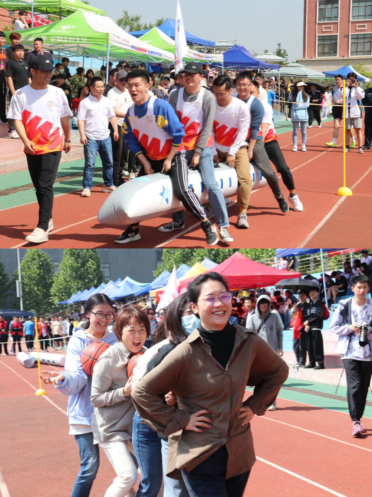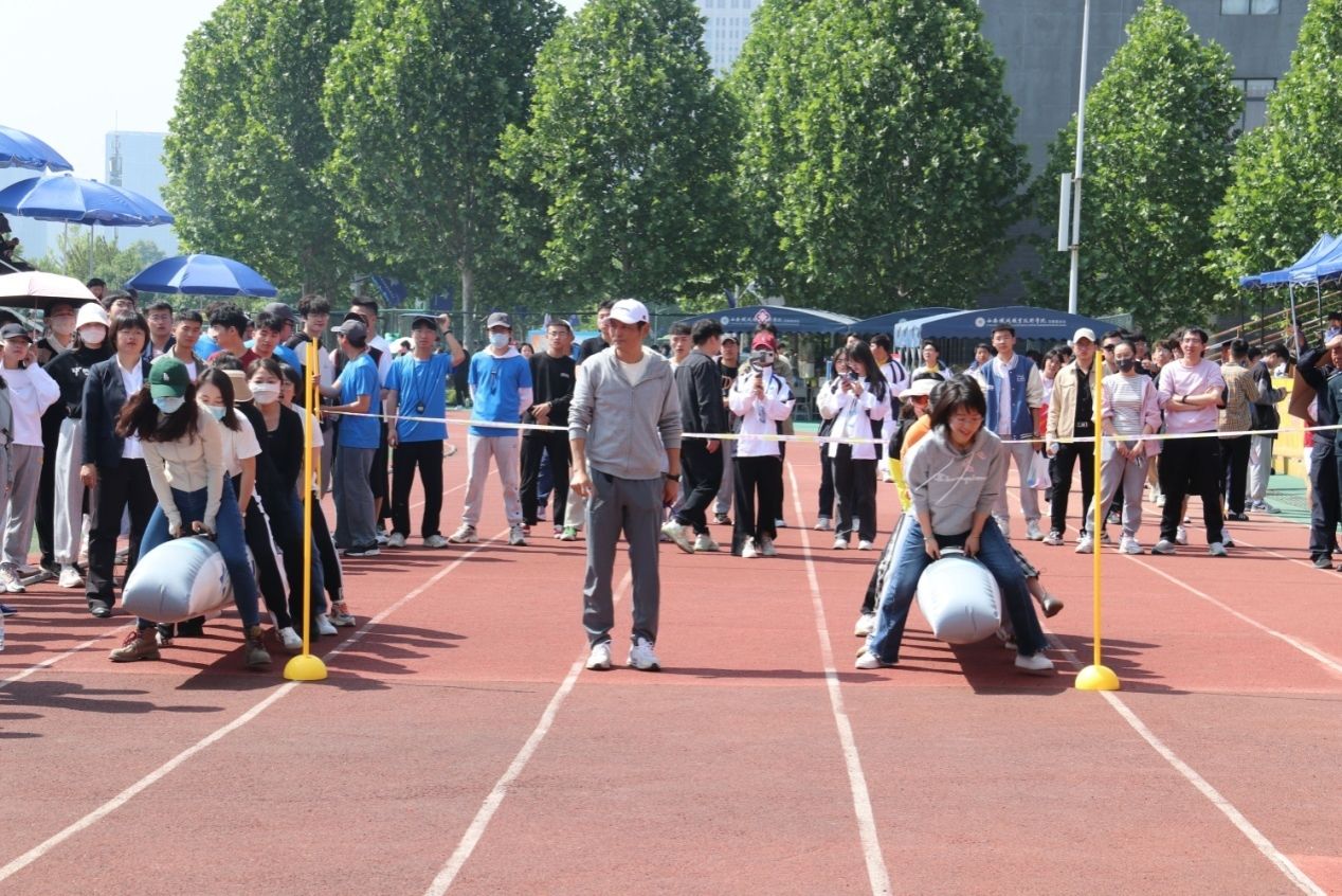 4月27日,在学院第66届运动会上,学院工会组织教职工开展了以“强身健体我参与 双高建设我拼搏”为主题的趣味体能竞赛,近三百名教职工参加了活动。