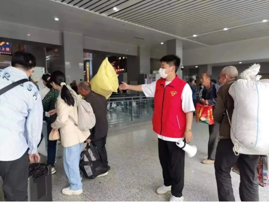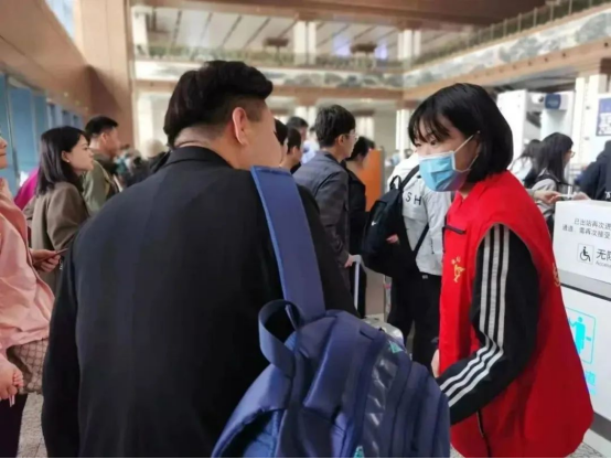 五一期间,必赢官网91名大学生志愿者,每天每人上岗时间约6小时,共计志愿服务时长约2730小时。志愿者们自愿牺牲假期休息时间,奉献青春、服务人民,大力弘扬“奉献、友爱、互助、进步”的志愿服务精神,以实际行动服务全国旅客,以满腔热情为助力铁路客运尽一份力、添一点光,为旅客们的安全便捷高效出行保驾护航,展现新时代西铁院大学生靓丽风采!