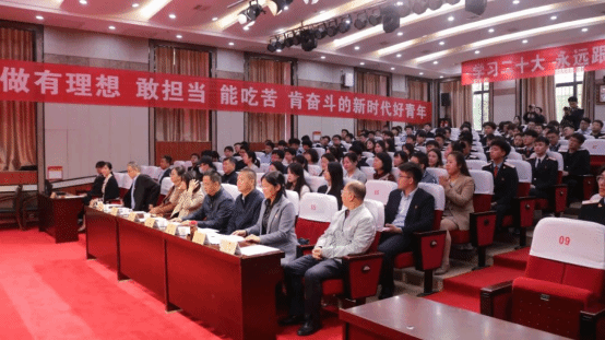 5月4日下午,学院在港务校区举行“学习二十大 永远跟党走 奋进新征程”2023年五四表彰大会。学院党委书记施利民,党委副书记任治军,党委组织部部长张伟敏,党委宣传部部长王琛,党委学工部部长郭小莉、副部长李栋,各二级学院党总支书记、团总支书记以及师生代表200余人参加会议。大会由院团委书记李妮主持。