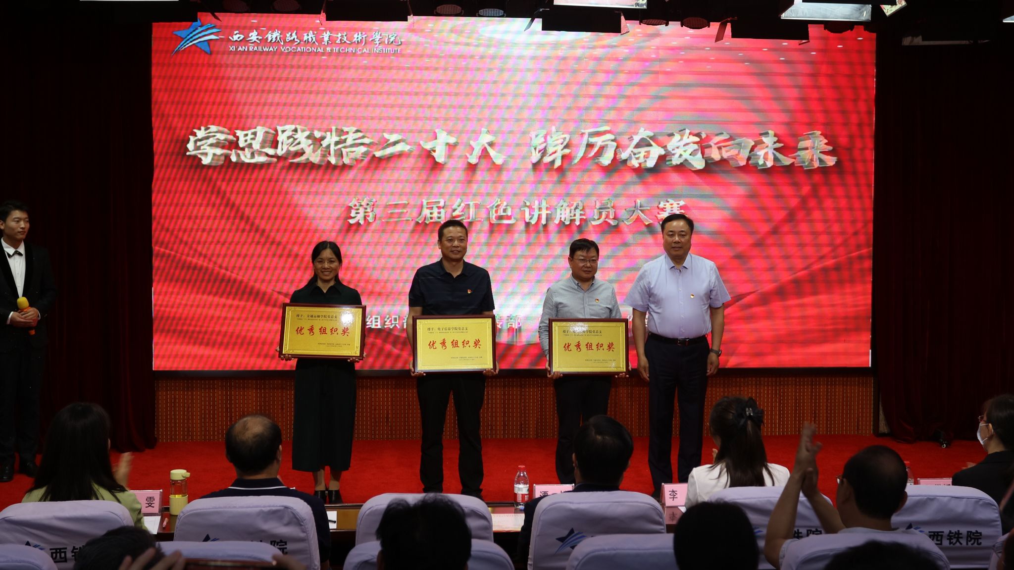 经过激烈角逐,最终交通运输学院安倍生荣获一等奖,电子信息学院陈玉颖、交通运输学院牛梓衡、电气工程学院王靖同3人荣获二等奖,机电工程学院肖媛媛、电气工程学院张文皓、土木工程学院时宗晗、电子信息学院景小宇、牵引动力学院强艺涓、交通运输学院宋欢会6人荣获三等奖,以上选手均被授予学院“金牌讲解员”称号。交运运输学院党总支、电子信息学院党总支及电气工程学院党总支荣获优秀组织奖。