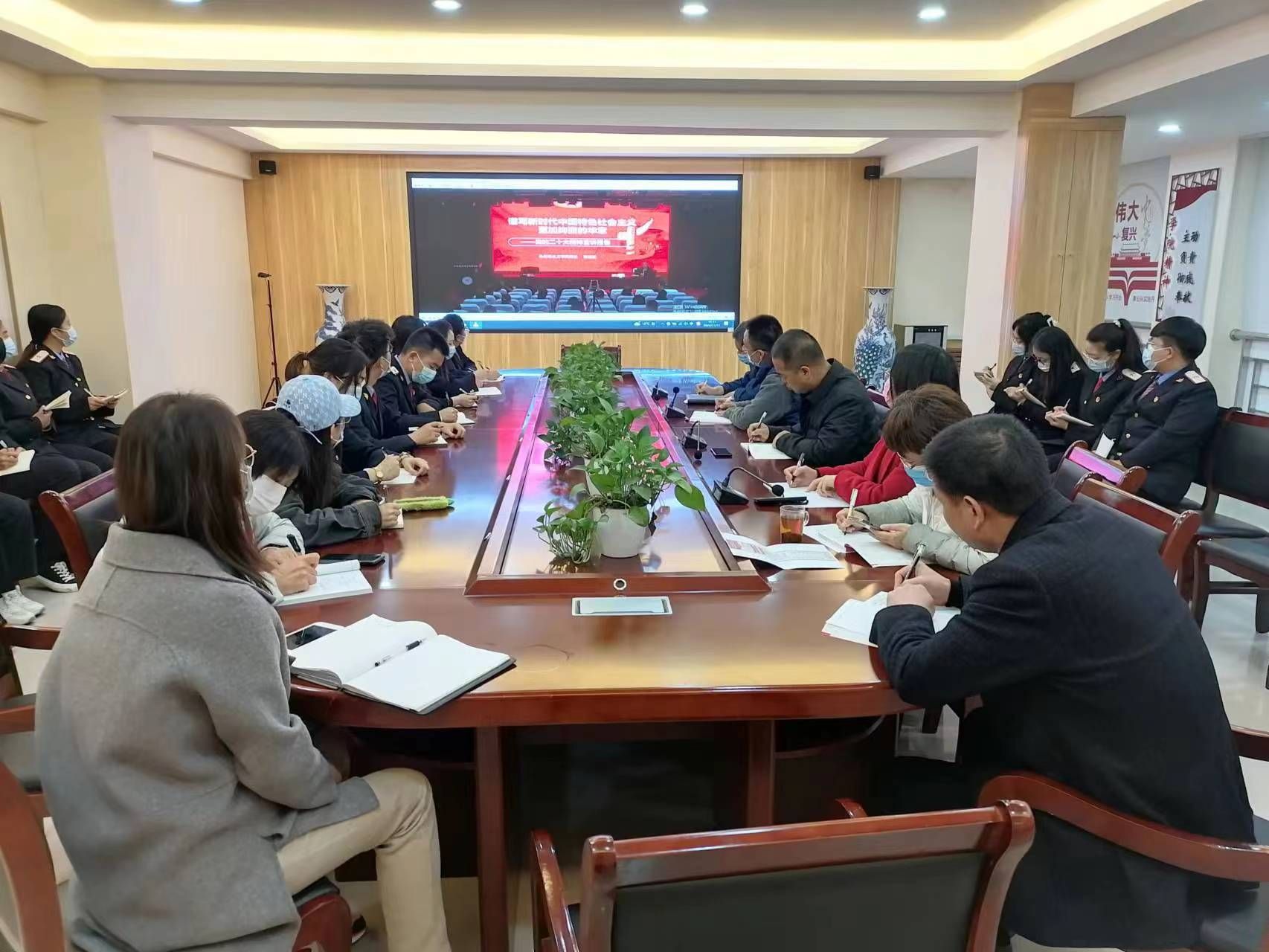 任治军在讲话中要求各党总支要迅速兴起学习宣传贯彻党的二十大精神的热潮,一是切实负起领导责任,要提高政治站位,精心安排、扎实推进,确保将学习宣传贯彻党的二十大精神与加强基层党组织建设、党员干部队伍建设和作风建设结合起来,贯通落实。二是牢牢把握正确导向,要坚持弘扬主旋律、传播正能量,切实用党的二十大精神统一思想、凝聚力量,激发调动党员干部、教职工立足岗位、干事创业的使命感、责任感,为教育事业发展团结奋斗。三是着力提升宣传效果,要坚持贴近实际、贴近教育,切实增强学习宣传党的二十大精神的针对性、实效性。要努力扩大学习宣传工作的覆盖面、影响力,确保学有所思、学有所悟、学有所得。