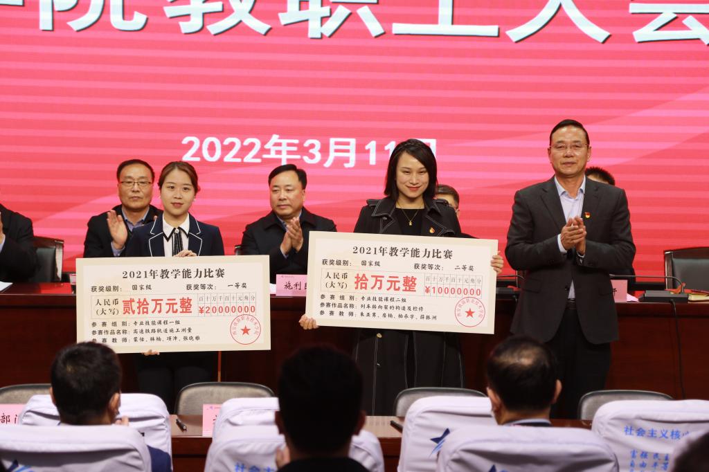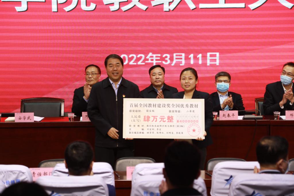 党委副书记、纪委书记邓轩首先宣读了2021年学院获得国家级、省级奖项的表彰决定。学院领导分别为受到表彰的先进代表颁奖。