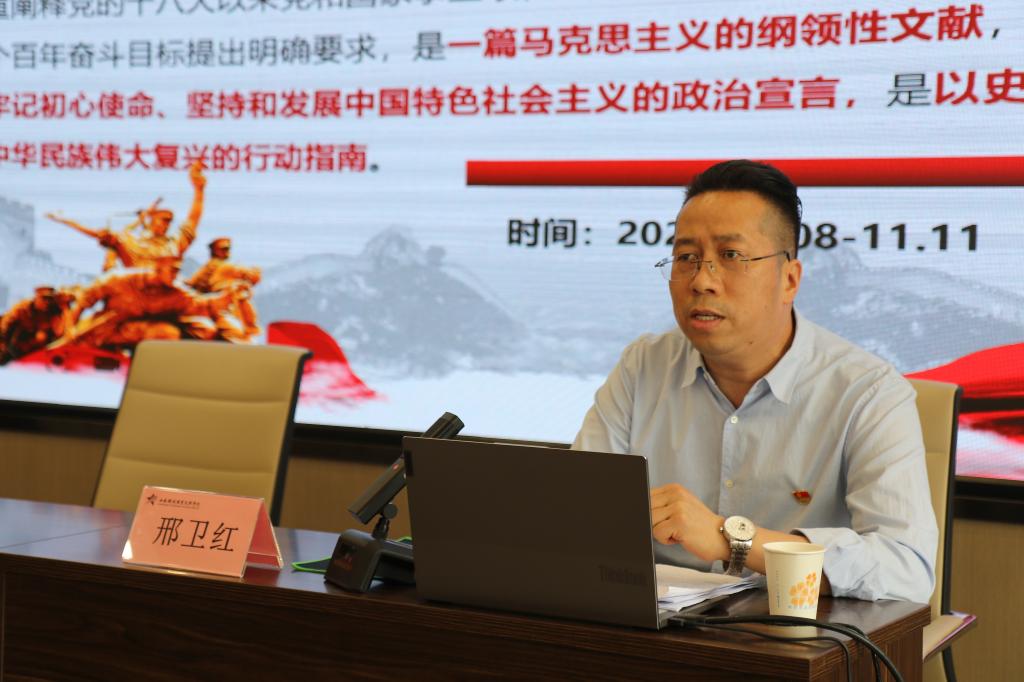 本次培训采取专题讲座、研讨交流、微党课观摩等多种教学方式进行。学院马克思主义学院毛特与形策教研室主任邢卫红副教授以《习近平新时代中国特色社会主义思想的提炼和丰富》为题,重点解读了《决议》对习近平新时代中国特色社会主义思想的创立、回答的重大时代课题、内涵、历史地位等内容的新提炼和丰富发展。学院马克思主义学院毛特与形策教研室副主任张赪老师作了《深入领会党百年奋斗的历史经验》专题报告,从百年党史的发展历程逐一分析了“十个坚持”的思想内涵。省委党校党史教研部主任苗光新教授,以《传承党百年奋斗宝贵经验 奋力实现第二个百年目标》为题,从党的十九届六中全会《决议》的主要内容及内在逻辑、实现第二个百年目标的有利因素和挑战以及传承党百年奋斗宝贵经验,奋力实现第二个百年奋斗目标等三个方面进行了详细解读。