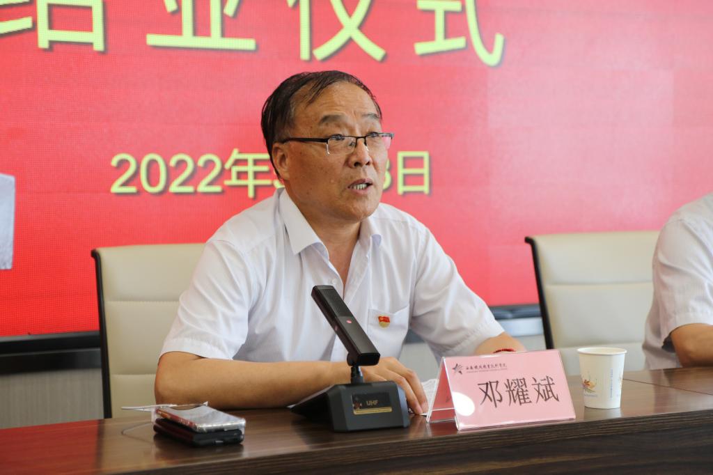 结业仪式上,学员代表汝仲修、王树、马纪、史骏分别结合学习体会进行了交流发言。学院党委副书记邓耀斌作总结讲话,他对此次培训给予充分肯定,并提出三点要求:一要提高政治站位,感悟思想伟力;二要深化党建引领,提振追赶信心;三要充分发挥党员、干部表率示范作用,紧紧围绕“双高”建设、提质培优项目等重点工作,凝心聚力、鼓足干劲,推动学院教育事业不断取得新进展,以实际行动迎接党的二十大胜利召开!