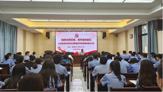 6月24日下午,学院党委副书记、纪委书记邓轩在自强校区为电子信息学生师生讲授了一堂题为“回顾光辉历程,筑牢信仰基石——从党的百年历史中汲取推进学院发展的坚实力量”的党课,电子信息学院教师党员和学生代表60余人现场聆听。
