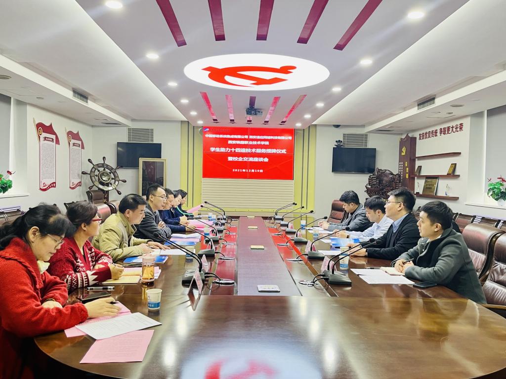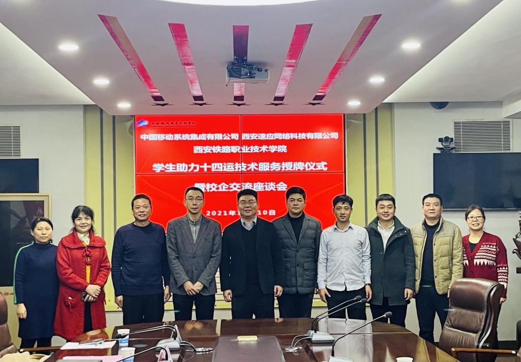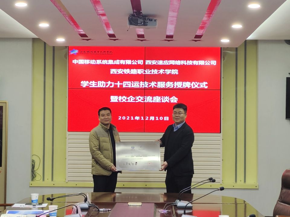 12月10日下午,中国移动系统集成有限公司(简称:中移集成)西北大区总经理张帆、西安速应网络科技有限公司(简称:速应科技)总经理赵志铎、销售总监张成、技术服务部主管张涛一行来必赢官网为学生助力十四运技术服务举行授牌仪式暨校企交流座谈会。学院党委副书记、纪委书记邓轩出席并讲话,电子信息学院院长董奇、副院长冯国良及通信技术专业教师参加。座谈会由董奇主持。