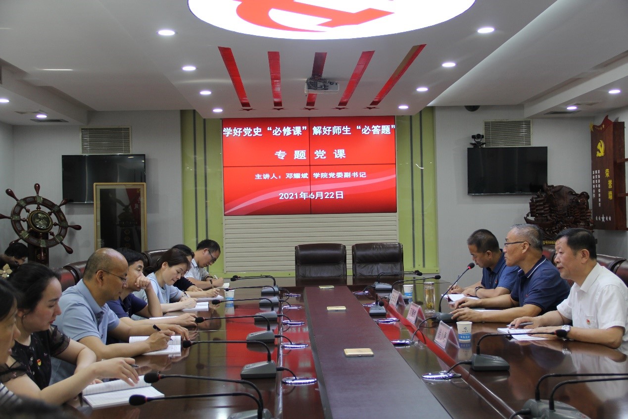 为激励党员干部学党史、悟思想、办实事、开新局,推动党史学习教育深入开展,6月22日,学院党委副书记邓耀斌在自强校区第三会议室,为交通运输学院党总支全体党员讲授了一堂题为“学好党史‘必修课’,解好师生‘必答题’”的党史专题党课。党课由交通运输学院党总支副书记、院长徐小勇主持。