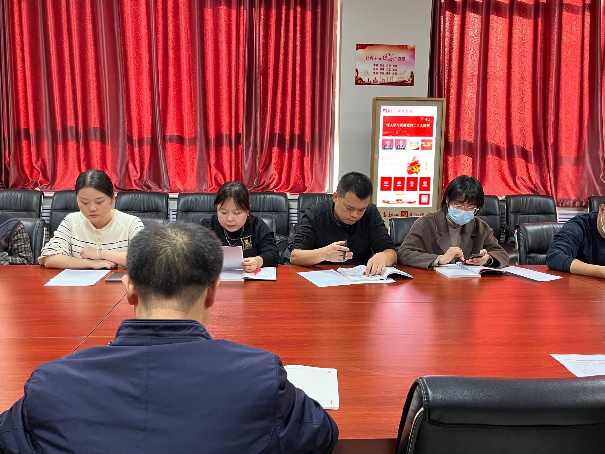 教学第二党支部书记姚芳芳围绕支部学习贯彻习近平新时代中国特色社会主义思想和党的二十大精神开展情况;党风廉政建设;意识形态工作情况;党建与教育教学业务互融共促等方面,进行了详尽的叙述。