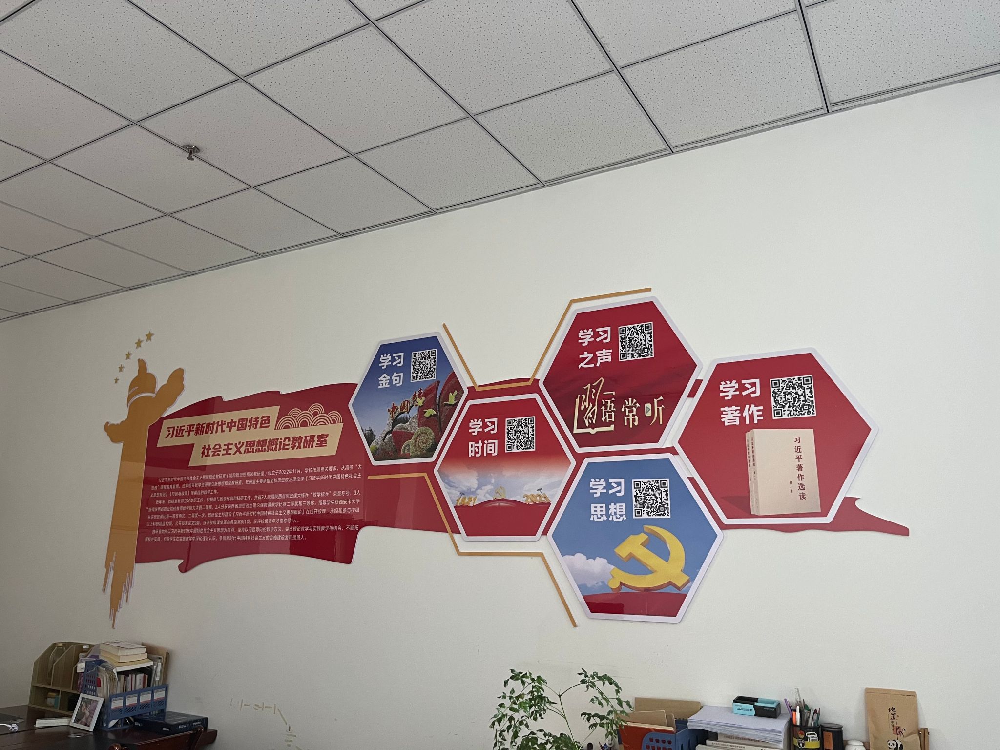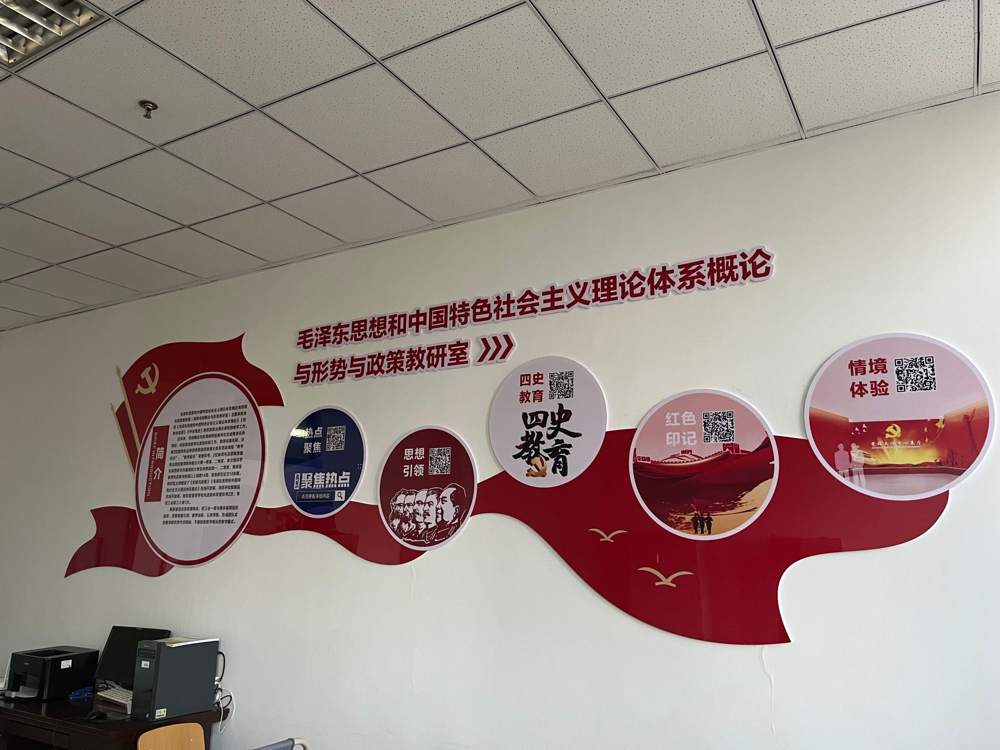 马克思主义学院各教研室墙面文化氛围提升兼具教育、欣赏和价值导向等功能,是环境育人和开展思想政治工作的有效载体,进一步推动了学校思想政治工作和校园文化的整体建设,彰显了马克思主义学院的政治底色,扎实推动了学院内涵式发展。