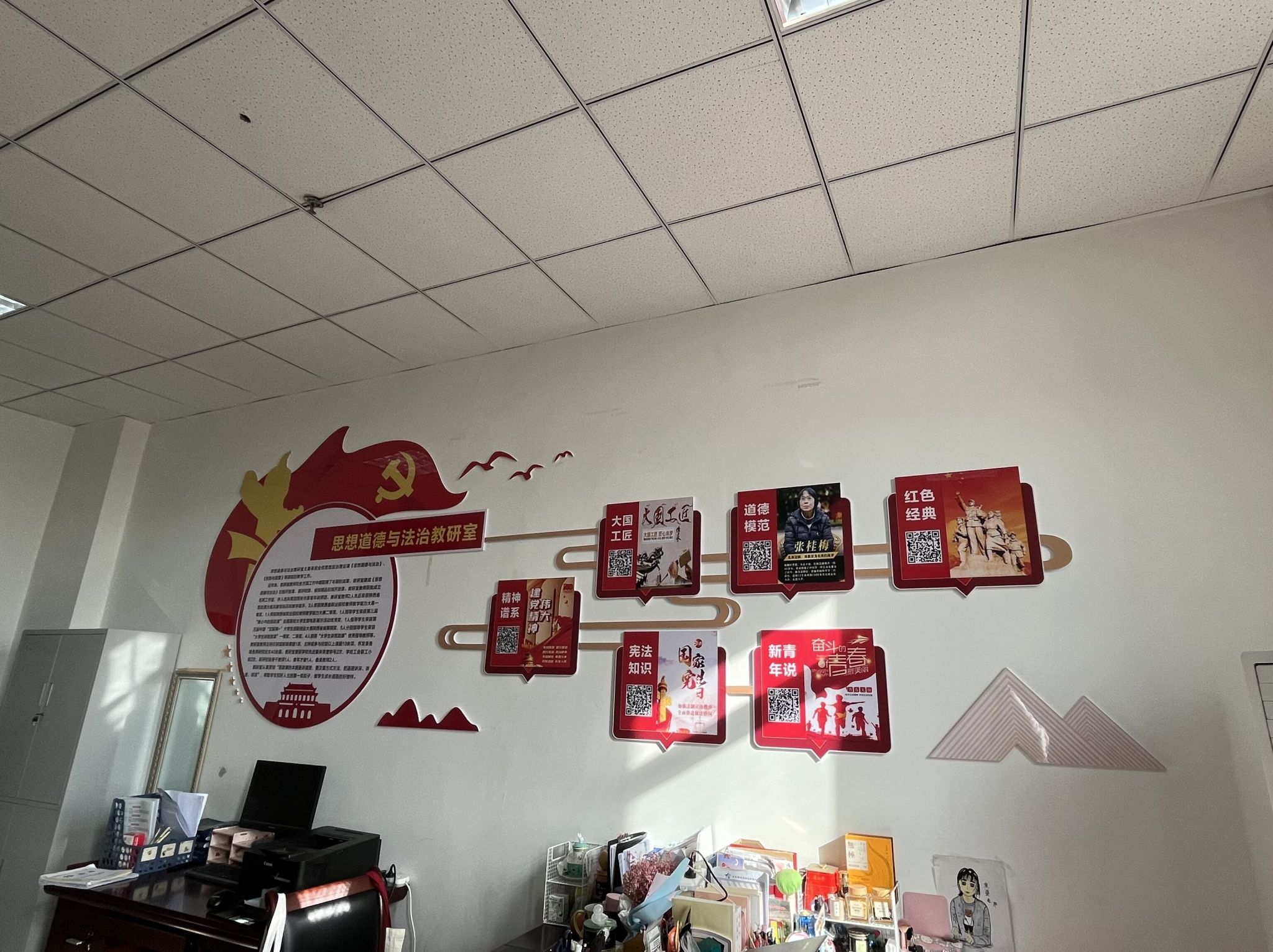 此次马克思主义学院以各教研室为单位,以课程建设需求为主线,以信息化手段为基础,着力打造具有马院风格,突出思政特色的教研室墙面文化氛围提升工程和育人教育为主要抓手的阵地建设。各教研室墙面文化氛围建设创新呈现模式,改变以往单一布局、内容无法及时更新、时效性难以保障的问题,创造性的使用二维码扫码获取资源的方式,并按照不同栏目对教学资源进行分类整理,方便教师学生及时查看视听教学资源,并且可以在不改变二维码的情况下,后台随时更新教学资源,做到各个板块内容常用常新。