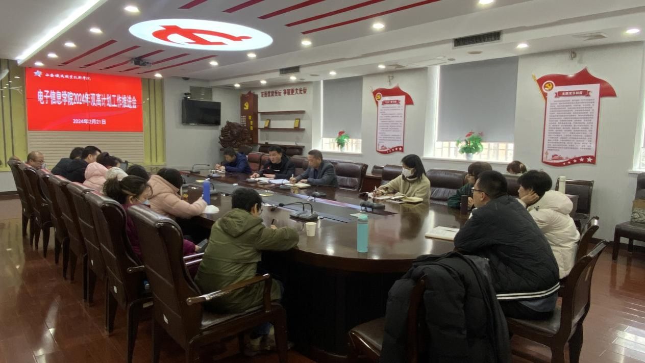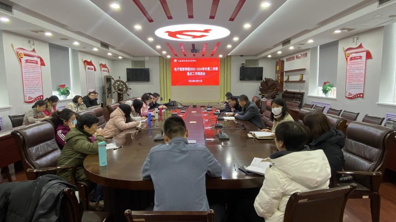 2月21日,电子信息学院在自强校区第三会议室召开“双高计划”建设暨2023-2024学年第二学期重点工作推进会。电子信息学院副院长冯国良、院办主任高琳、副主任杨星、全体教研室主任及专业带头人参加会议。会议由电子信息学院院长董奇主持。
