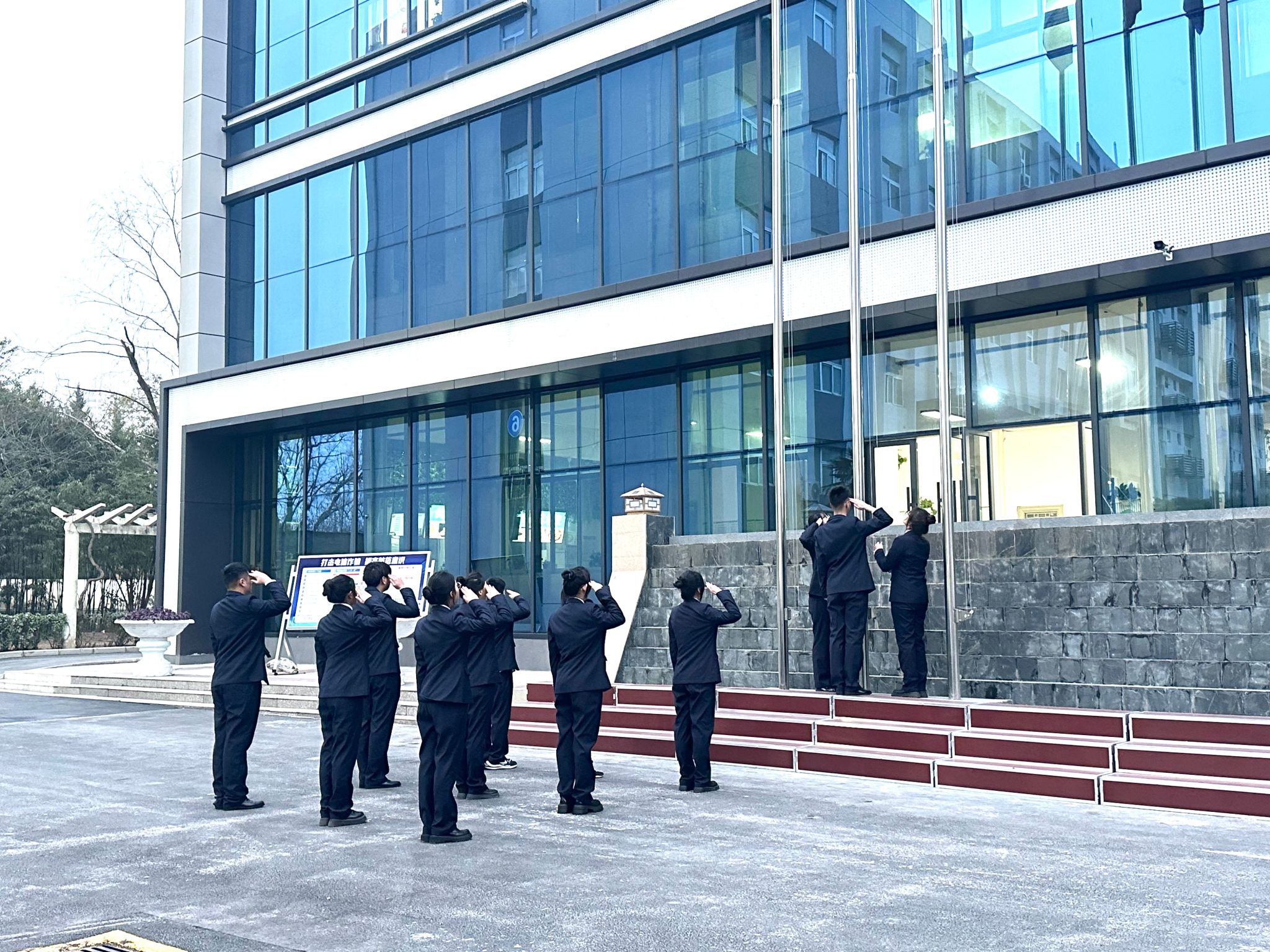 早晨七点,师生准时到场参加升旗仪式。学前教育国旗护卫队的成员们以饱满的热情护卫五星红旗入场,他们迈着铿锵有力的步伐,整齐划一地走向升旗台。庄严肃穆的《义勇军进行曲》响起,全体师生全体肃立,齐唱国歌,向国旗行注目礼。