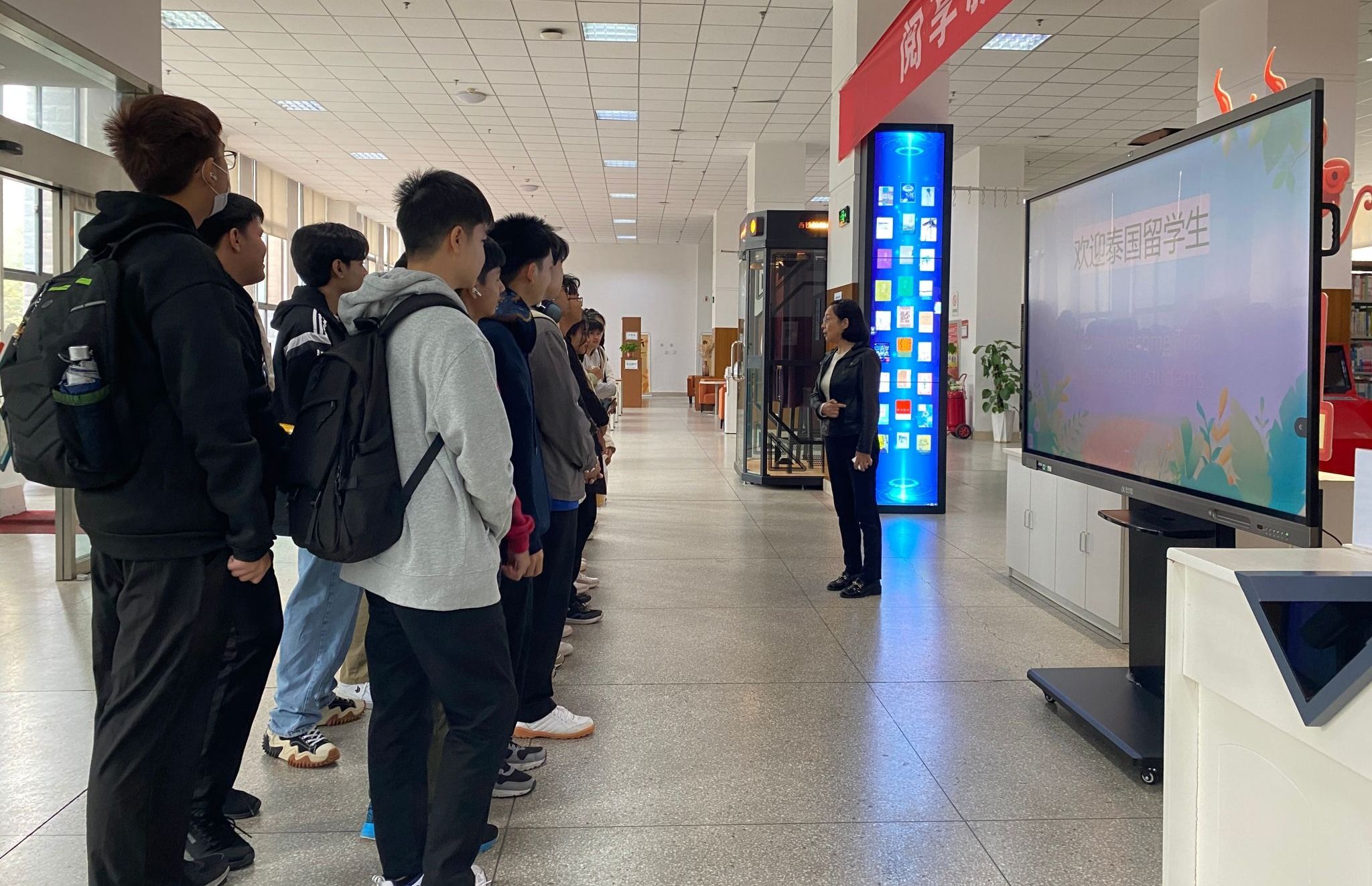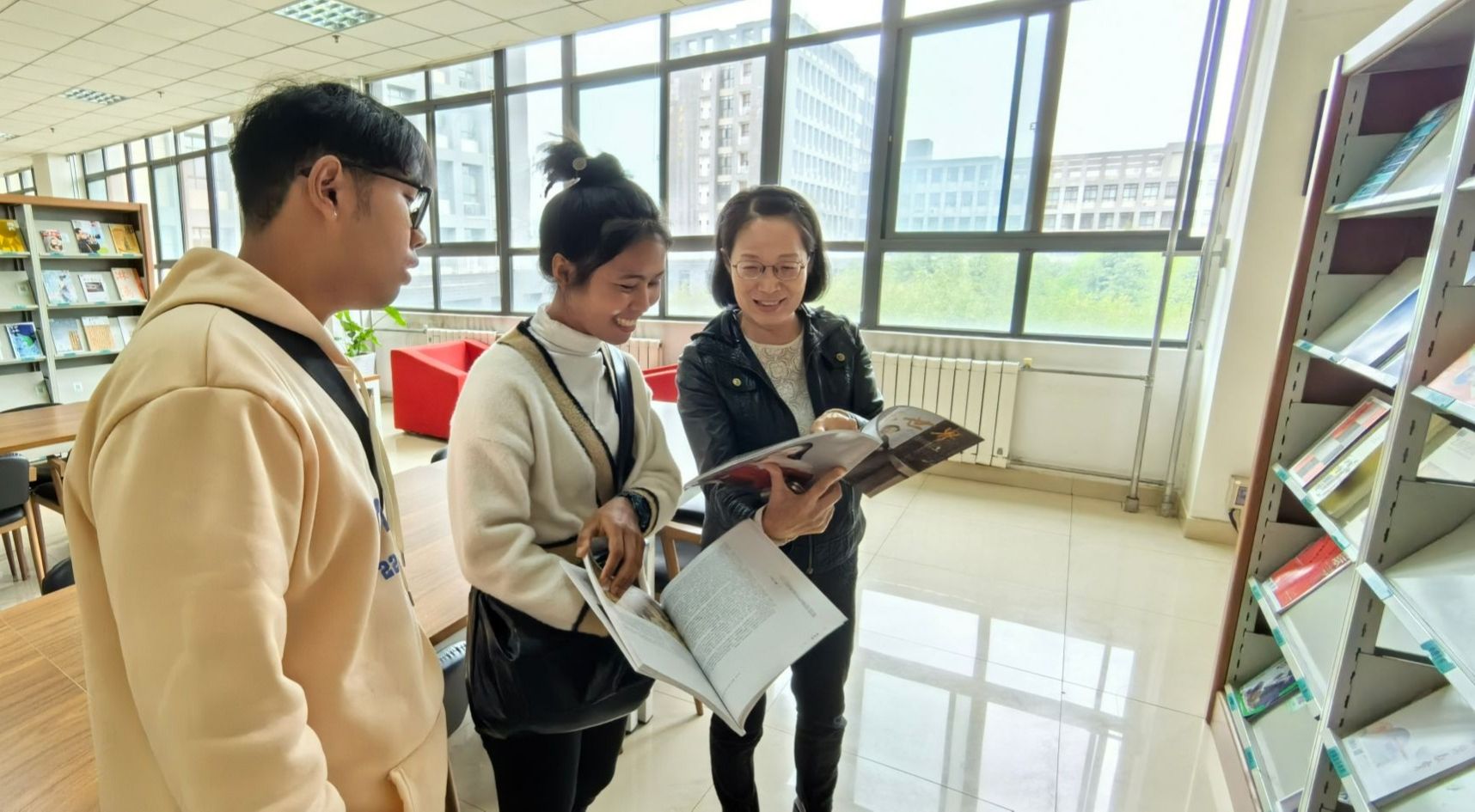 在参观图书馆一楼、二楼纸质图书借阅区、电子阅览区时,留学生们还饶有兴致地从书架上翻阅着各类书籍,纷纷积极提问,展现出浓厚的学习兴趣,并表示一定会多来图书馆,借阅更多的书籍。