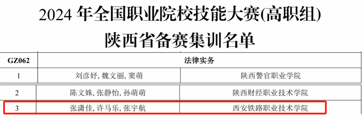3月27日,2024年陕西省职业院校技能大赛首届法律实务赛项在陕西警官职业学院举行。必赢官网马克思主义院长张刚毅担任领队,焦雯、张帆、赵楠、高瑞佳担任指导老师,张潇佳、张宇航、许马乐、赵塔泽、付鹏程、陈俊杰6名学生组成2支参赛团队参加了本次大赛。经过激烈角逐,2支参赛团队均取得了优异成绩,其中1支参赛团队进入2024年全国职业院校技能大赛备赛集训,填补了法律实务学生技能赛项在必赢官网的历史空白。
