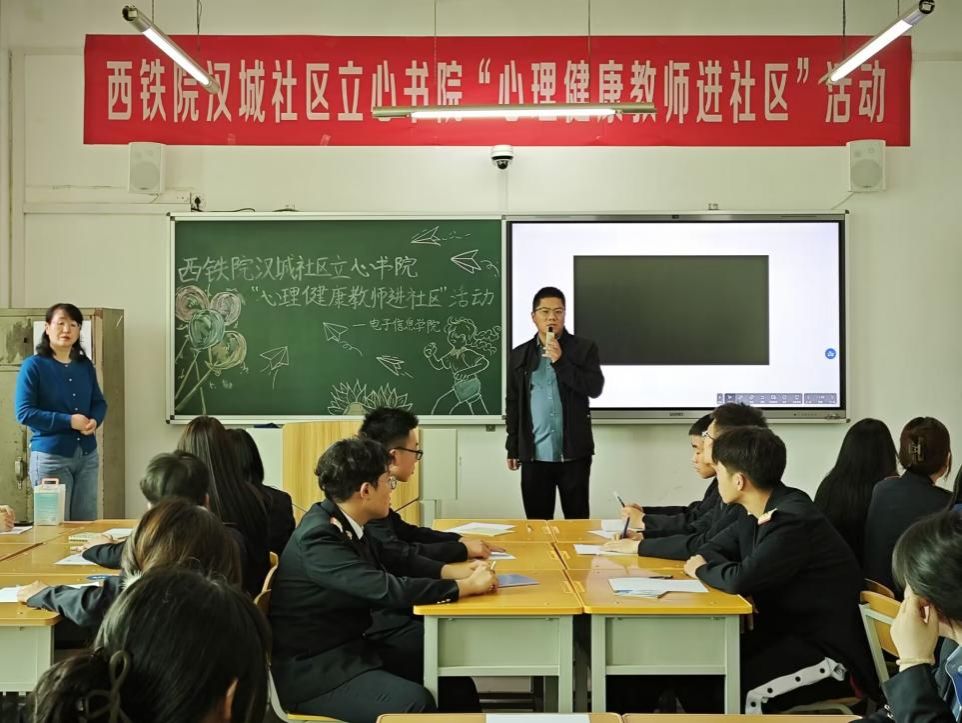 为进一步普及心里健康知识,提升心理健康育人水平,帮助同学释放情绪,缓解心理压力,引导学生关心自身悦纳自我,让同学们能够以乐观向上的态度去面对学习和生活,构建和谐美好的校园环境。4月10日下午,电子信息学院与马克思主义学院联合举办西铁院汉城社区立心书院“心理健康教师进社区”活动。本次活动由党委学生工作部主办,电子信息学院承办,马克思主义学院心理健康教师巴文娟担任主讲,电子信息学院心理健康工作辅导员胡士亮及各班心理委员40余名同学参与。