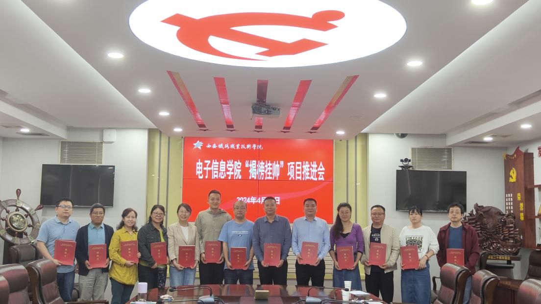 4月19日下午,电子信息学院在自强校区第三会议室召开“揭榜挂帅”项目推进会,电子信息学院院长董奇、办公室主任高琳、副主任杨星及全体揭榜人参会,会议由副院长冯国良主持。