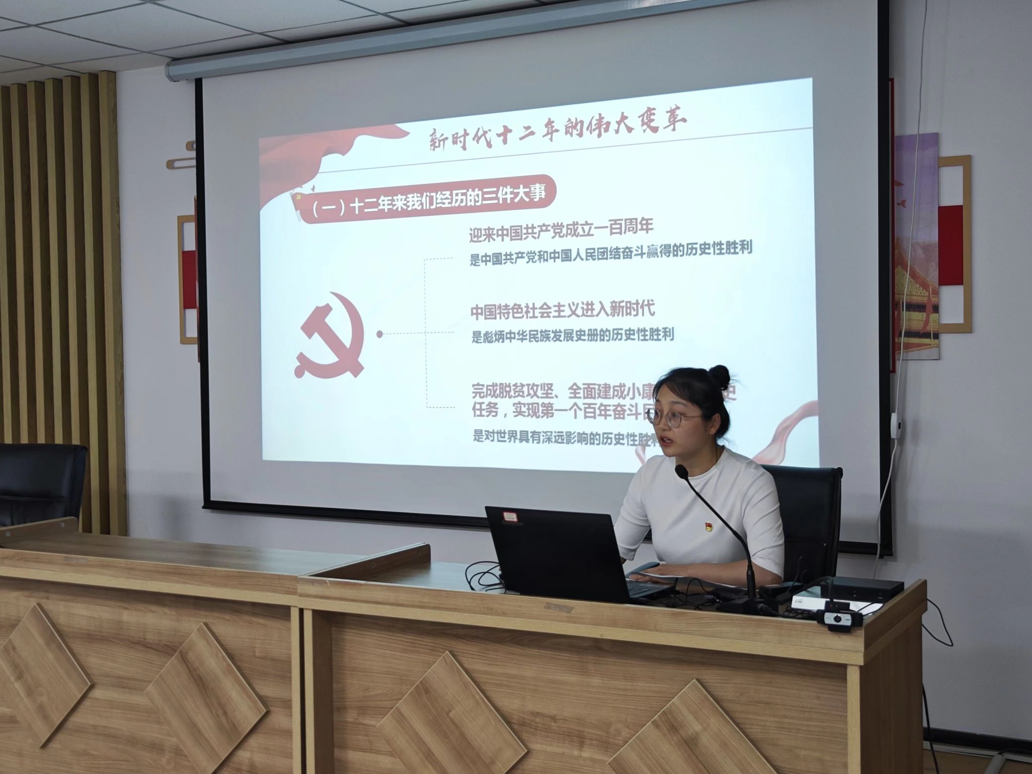 邢凤霞最先以《新时代的伟大变革》为主题,从“十二年来我们经历的三件大事”和“新时代的历史性成就和历史性变革”两个维度,带领大家回顾了以习近平为核心的党中央,团结带领全党全国各族人民砥砺奋进的极不平凡历程,她联系现实鼓励大家要积极进取、奋发有为,创造精彩人生,努力为实现中华民族伟大复兴作出更大贡献。