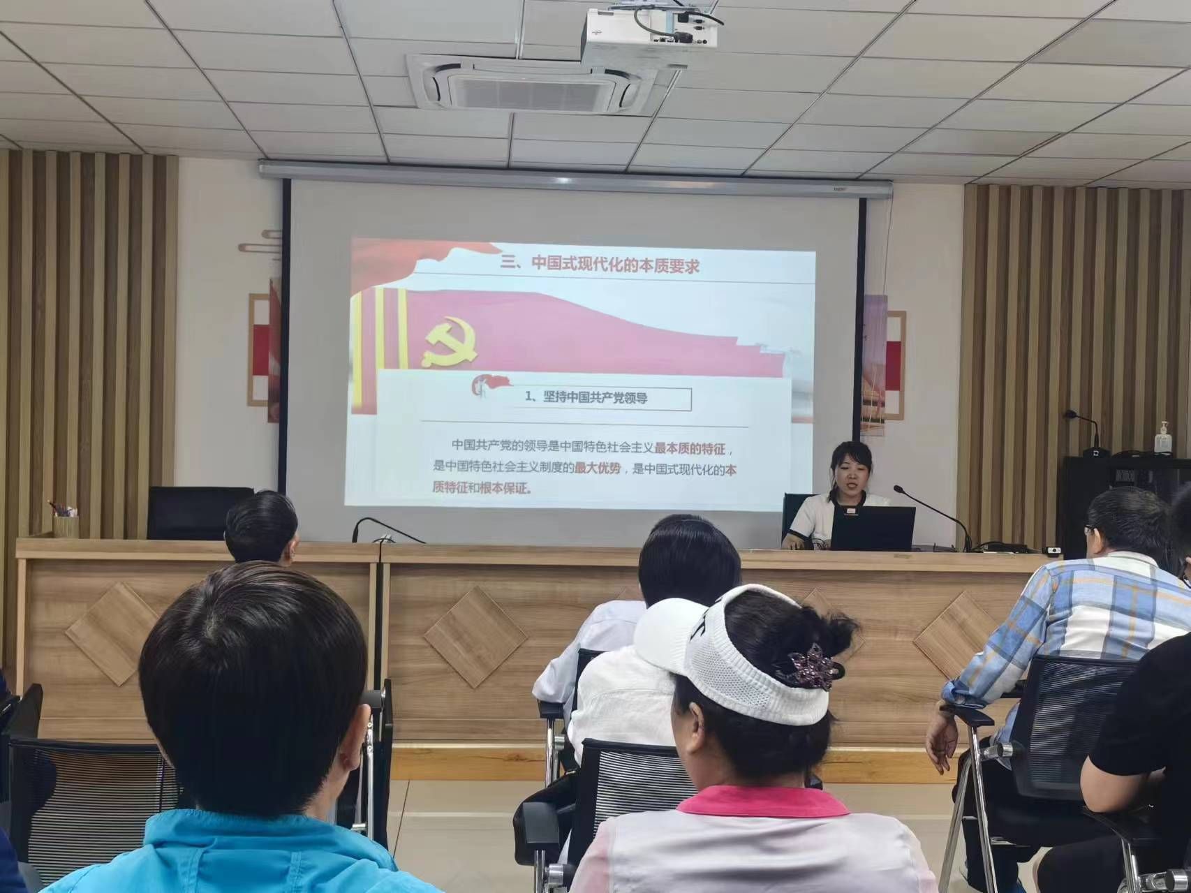 紧接着,王燕萍作了《中国式现代化——中国式现代化是啥样?》为题的报告。她率先论述了从新民主主义革命阶段到中国特色社会主义新时期,中国共产党领导和带领全国各族人民,基于中国国情和中国特色,坚定不移开创中国式现代化道路的伟大征程,并从“中国式现代化的特色”及“中国式现代化的本质要求”两个方面进行了深入分析和细致讲解,让大家对中国式现代化对人类文明的巨大贡献有了更深刻的理解。