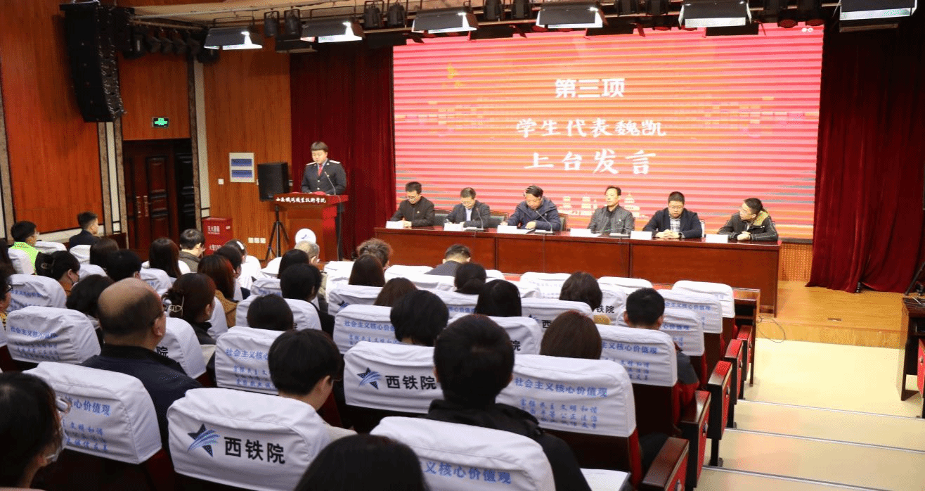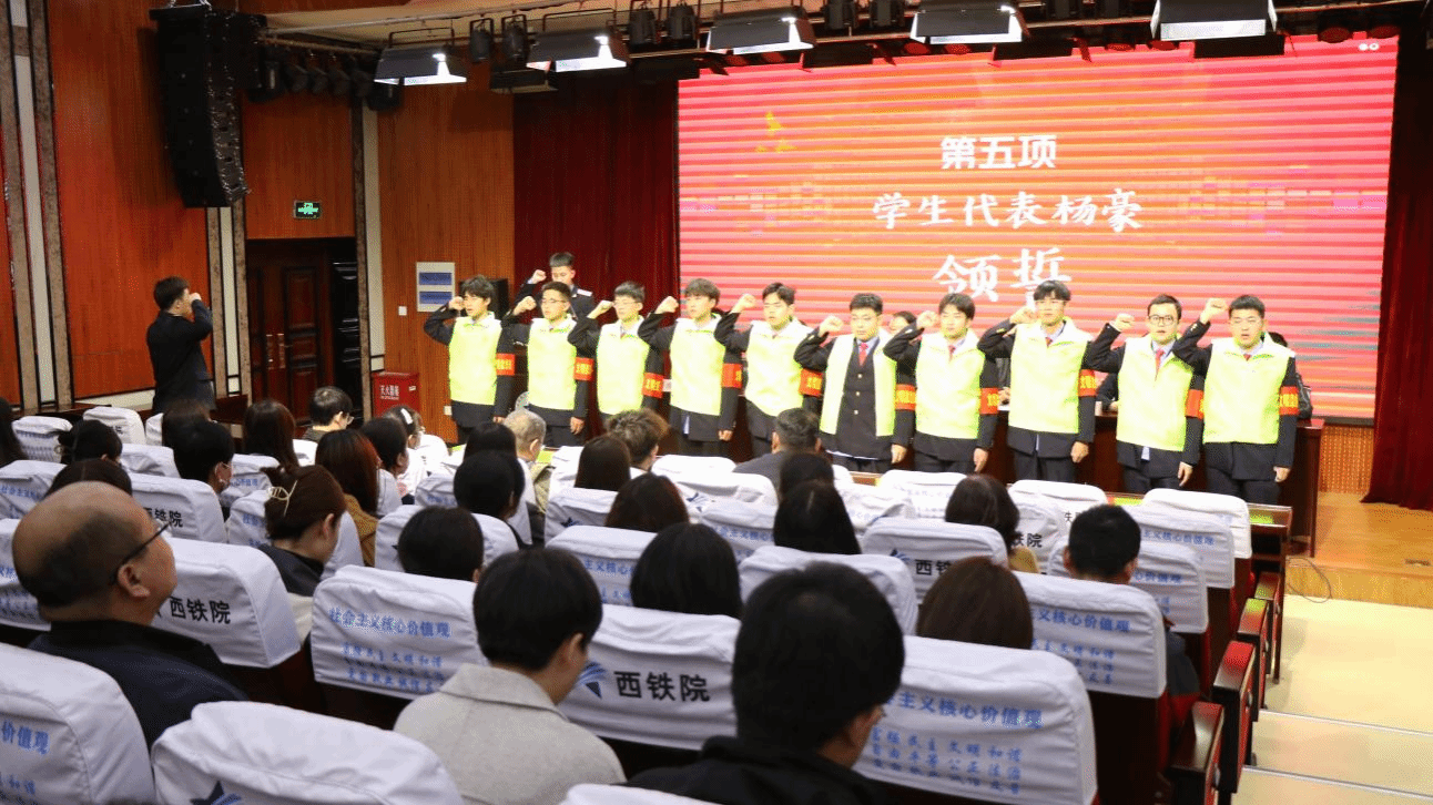 学生代表魏凯作表态发言并发出倡议。创建文明校园是所有学生的义务和责任。在课堂上,应牢记学习使命,营造良好教室环境及学习氛围。在餐厅里,应自觉排队就餐,节约粮食,养成良好就餐习惯。在宿舍里,应讲究个人卫生和公共卫生。与室友和平相处,共创和谐之风。对于个人,应牢记社会主义核心价值观,熟知全国文明校园创建应知应会,做到举止文明,展示西铁学子良好形象。
