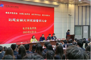 4月6日下午,电子信息学院全体教职工和学生代表举行“锻造理想信念,弘扬主流价值,涵育中华文化,滋养文明沃土”创建全国文明校园誓师大会,大会由电子信息学院办公室主任马荣主持。
