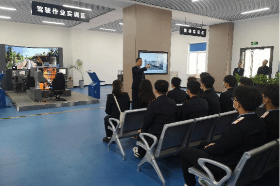在09-32捣固车仿真作业实训室,工作人员细致讲解捣固车的应用现状和作业规程,具体演示捣固车的驾驶位、作业位操作流程,并指导部分同学亲身体验捣固车的驾驶和作业基础操作环节。