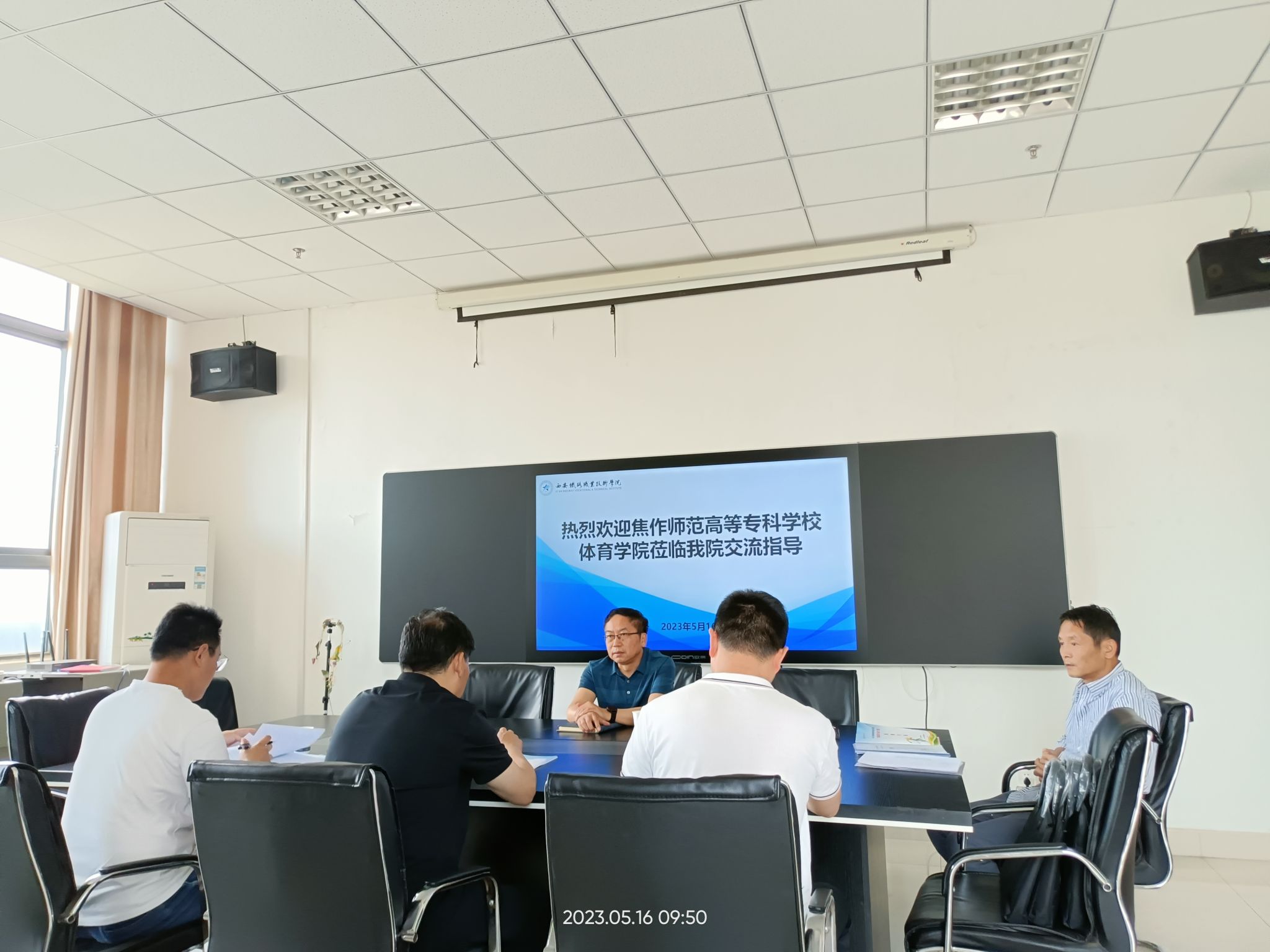 5月12日,焦作师范高等专科学校体育学院院长卫长江教授,教学科研办公室主任、党政办公室主任一行三人到必赢官网基础部调研交流。