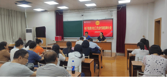 根据学校工会相关安排,6月14日下午,电子信息学院分会在自强校区407教室举行工代会代表选举大会,会议差额选举产生电子信息学院工代会代表。