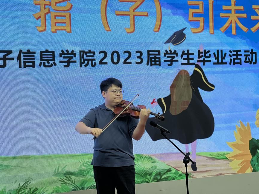 恰同学少年风华正茂,书生意气,挥斥方遒。师生代表们表演了自己为毕业生精心准备的“致青春——启航未来”文艺节目。辅导员吴斐然老师演奏了优雅的小提琴曲《起风了——留住毕业“声”》,优美的琴声犹如高山上汩汩流淌的泉水沁人心脾,让人深深陶醉,饱含了对毕业生们的美好祝福;学生唐雨彤激情澎湃的演唱了《海阔天空》,鼓励毕业生们坚持自己的理想,永不放弃;学生康树昊3人表演了青春洋溢的街舞《飞扬青春》,用青春的活力点燃了激情的火焰,将这场毕业盛宴推向高潮!