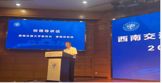 本届西南交大高等学历继续教育毕业典礼由西南交通大学网络教育学院副院长姬晓旭主持,西南交大副校长康国政亲临现场参加了毕业典礼,毕业典礼隆重而热烈。参加毕业典礼的学生代表有带着婴幼儿的,有带着爱人的,连校长和教师们都感叹,是一场大型网友见面会。康校长寄语毕业生们,一要让终身学习成为良好习惯;二要让传承与创新结合起来;三要专业精通精益求精,最后期望学生竢实扬华,自强不息,天高任鸟飞、海阔任鱼跃,追求卓越,重在坚持。