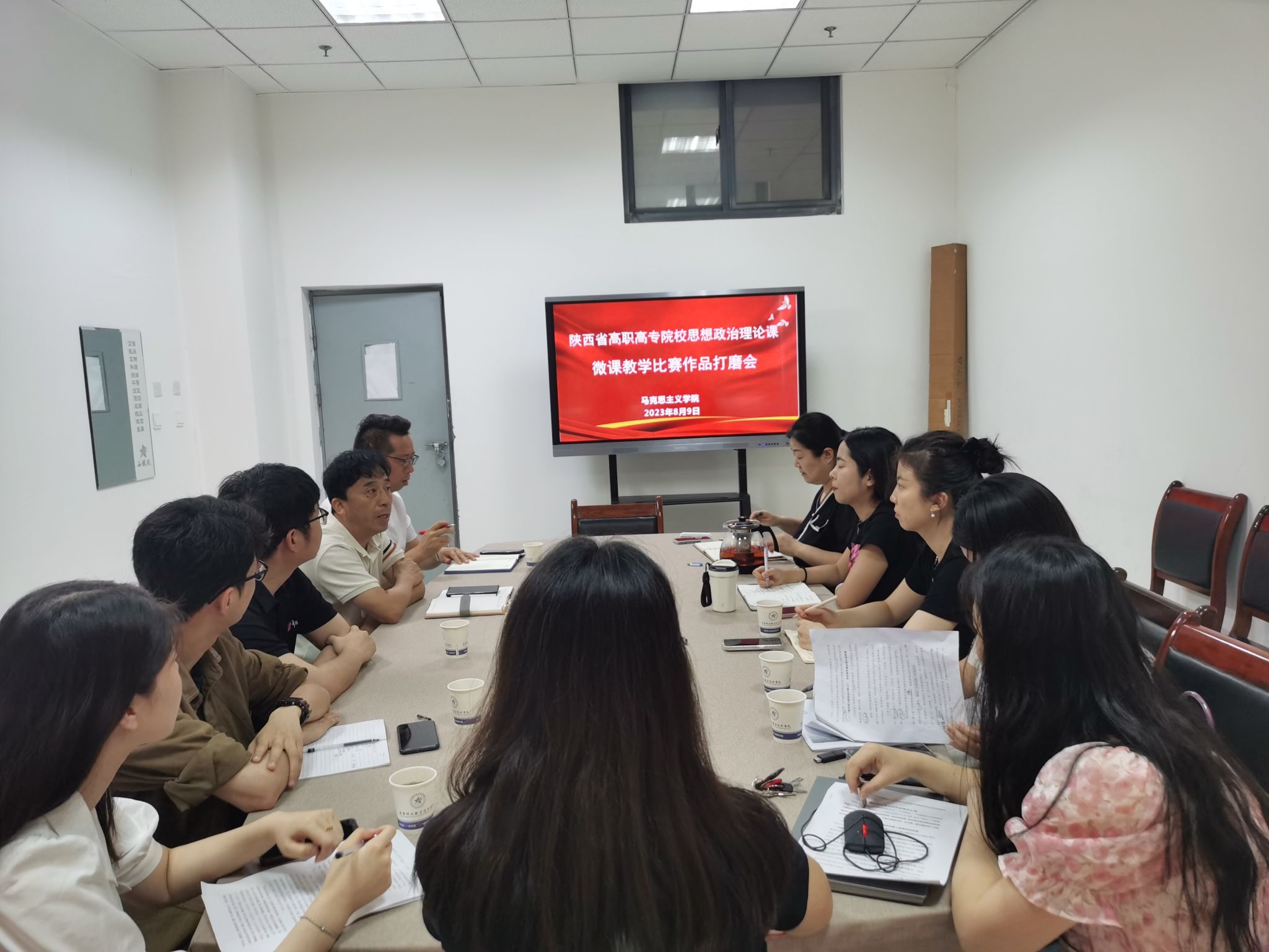 8月2日早上接到陕西省高职高专院校思想政治理论课教学研究会举办“陕西省高职高专院校思想政治理论课微课教学比赛”的通知后,马克思主义学院高度重视,第一时间向学校领导进行了汇报,院长张刚毅召集副院长邢卫红、办公室主任、各教研室主任召开紧急会议,动员老师积极参加比赛并对比赛作品进行打磨,要求教研室组织教案的编辑。