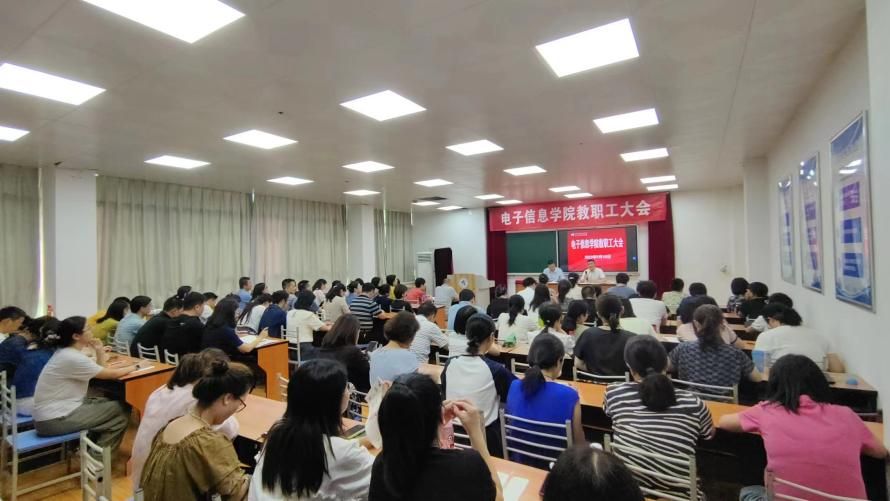 职工大会进一步凝聚了力量,电子信息学院全体教职工将继续发扬“逢旗必扛,逢冠必夺”的优良传统,牢固树立“躬耕教坛,强国有我”的志向和抱负,为党育人、为国育才,在教育教学实践中,身体力行,敬业奉献,勇创新业,争做“四有”好老师和“四个引路人”。