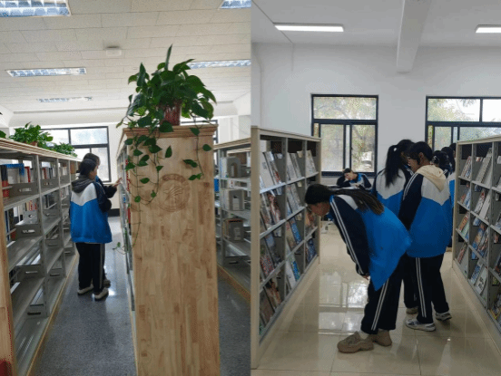 整齐的书架,琳琅满目的书籍,温馨优美的环境,书香满溢,吸引同学们纷纷驻足,挑选自己喜欢的书籍,徜徉在知识的海洋。