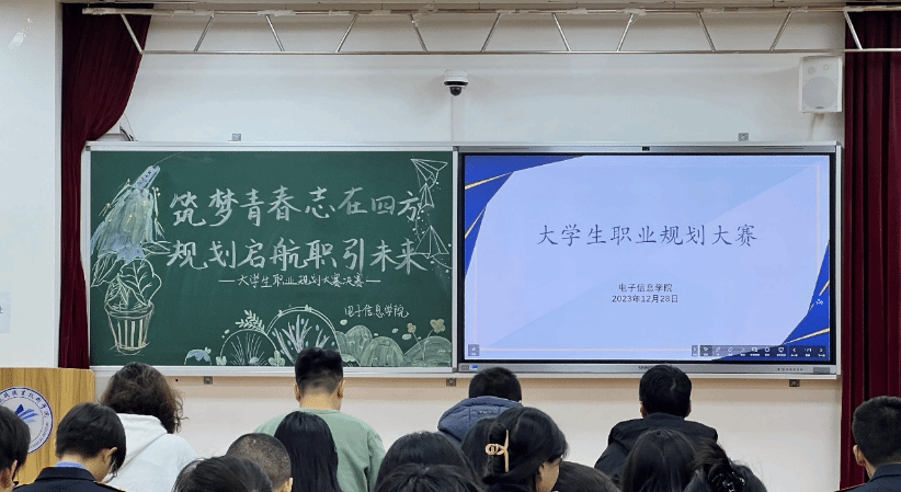 12月28日,电子信息学院团总支在教学楼407教室举办以“筑梦青春,职引未来”为主题的大学生职业规划大赛决赛。电子信息学院团总支书记畅伟宁,就业指导老师张子豪、侯旭龙、张琳等老师担任评委。